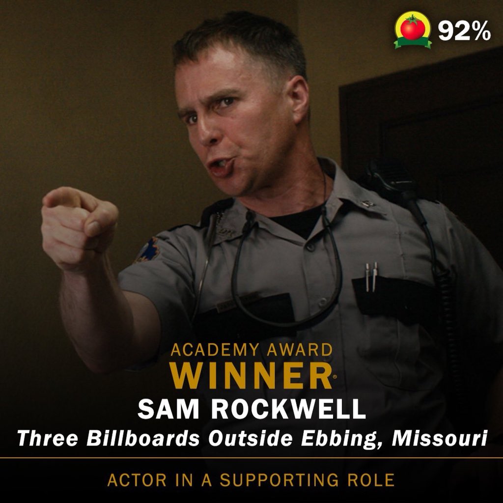 Por su papel en Tres anuncios por un crimen, Rockwell obtuvo el premio. Curiosamente, derrotó a su compañero de filme, Woody Harrelson, quien interpreta al comisario del pueblo ficticio de Ebbing.