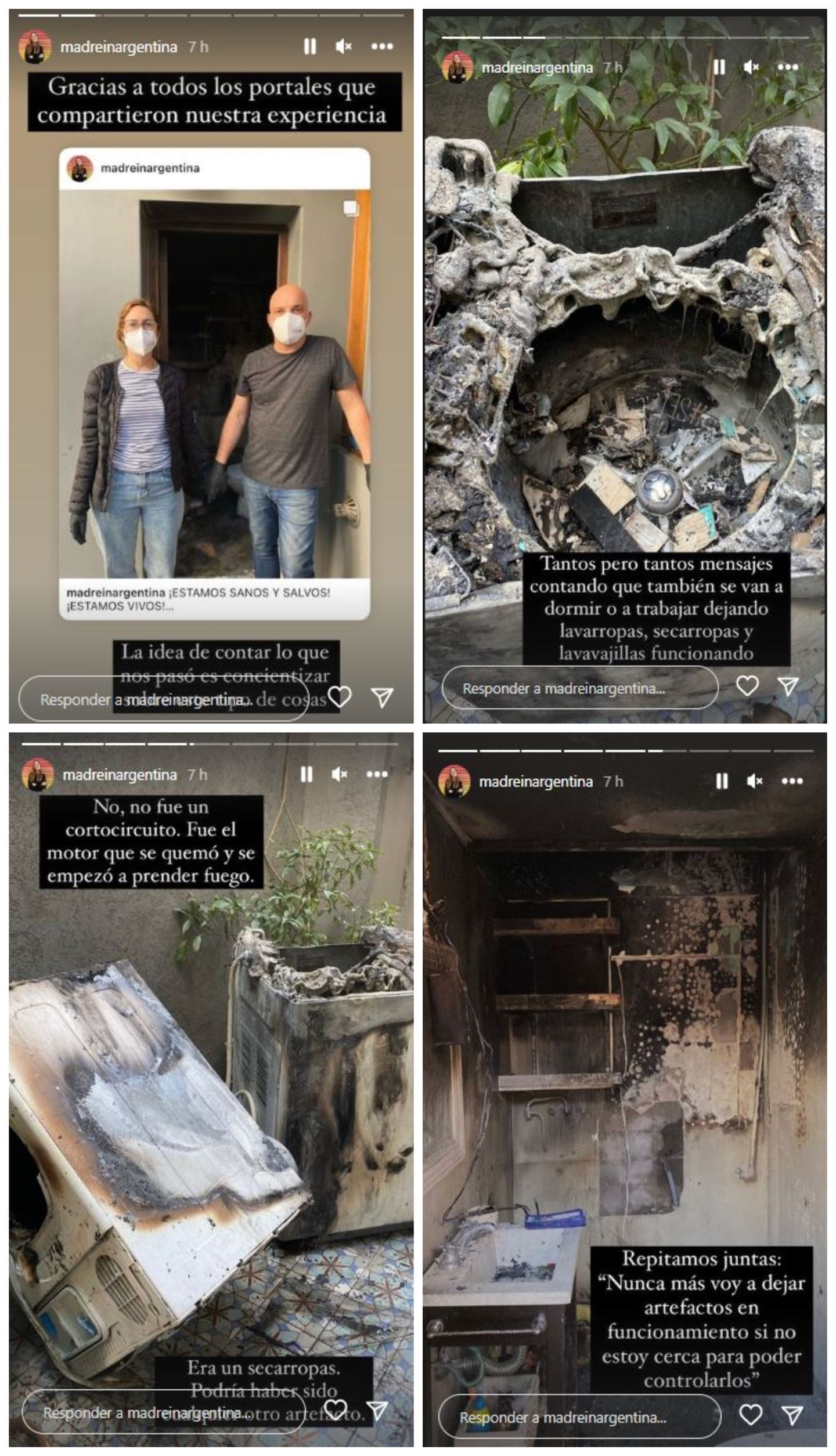“Tantos pero tantos mensajes contando que también se van a dormir dejando lavarropas, secarropas y lavavajillas en funcionamiento”, señaló. Para luego agregar: “Repitamos juntas ‘Nunca más voy a dejar artefactos en funcionamiento si no estoy cerca para poder controlarlos’”.