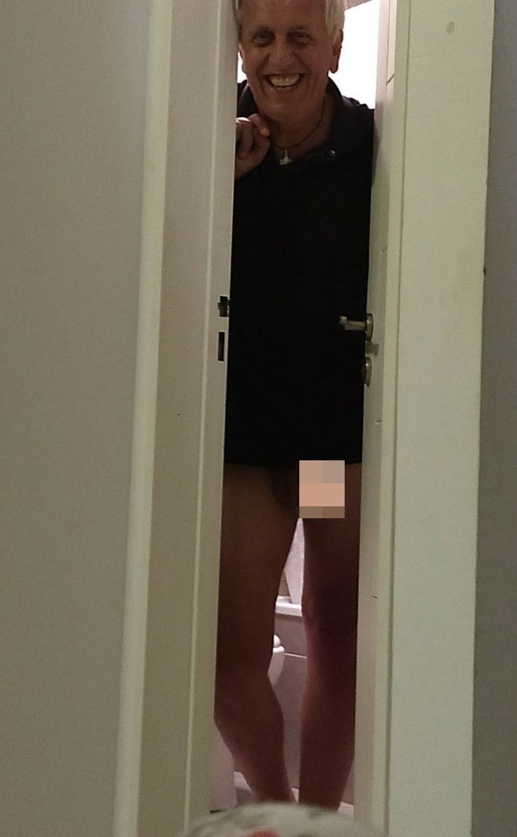 En las imágenes se muestra junto a una mujer rubia acostados en una cama y hay otra en la que está completamente desnudo.