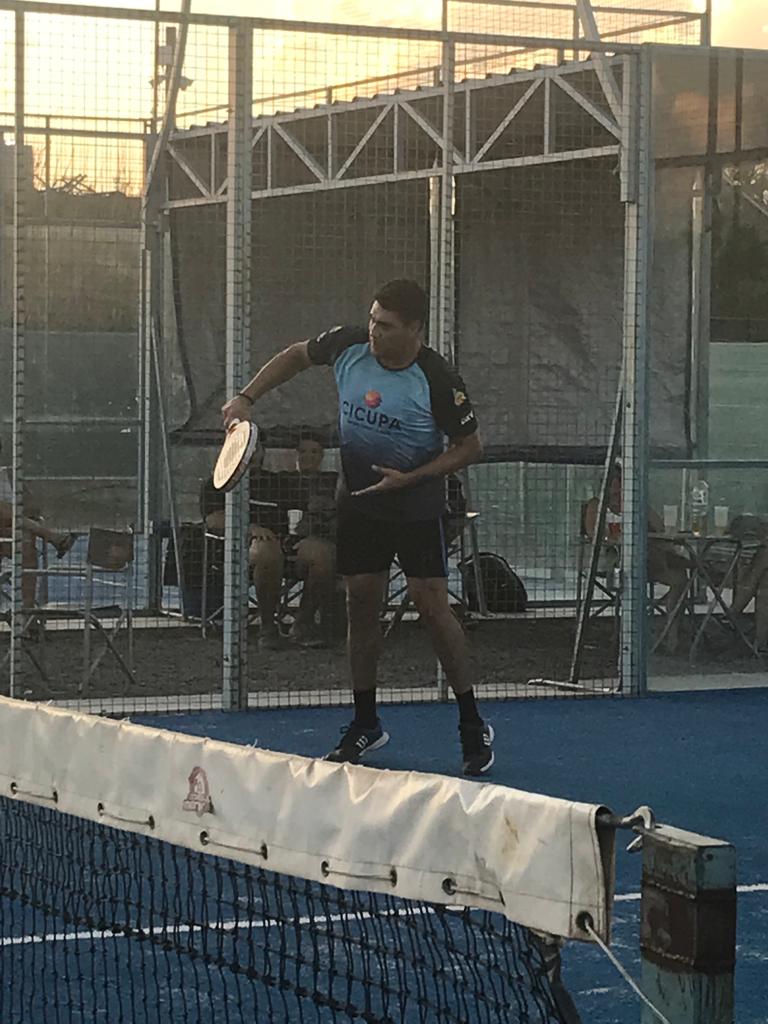 El lugar elegido fue el Complejo Mendoza, en Capital. En el marco de un torneo interno, el cantante riojano y Silvana Campus (Nº1 de Argentina desde hace 10 años, quíntuple campeona mundial y doble campeona sudamericana) enfrentaron a la pareja compuesta por Mariano Uzair (miembro de la Asociación Sanjuanina de Pádel) y Alejo Ribes (uno de los talentos provinciales).