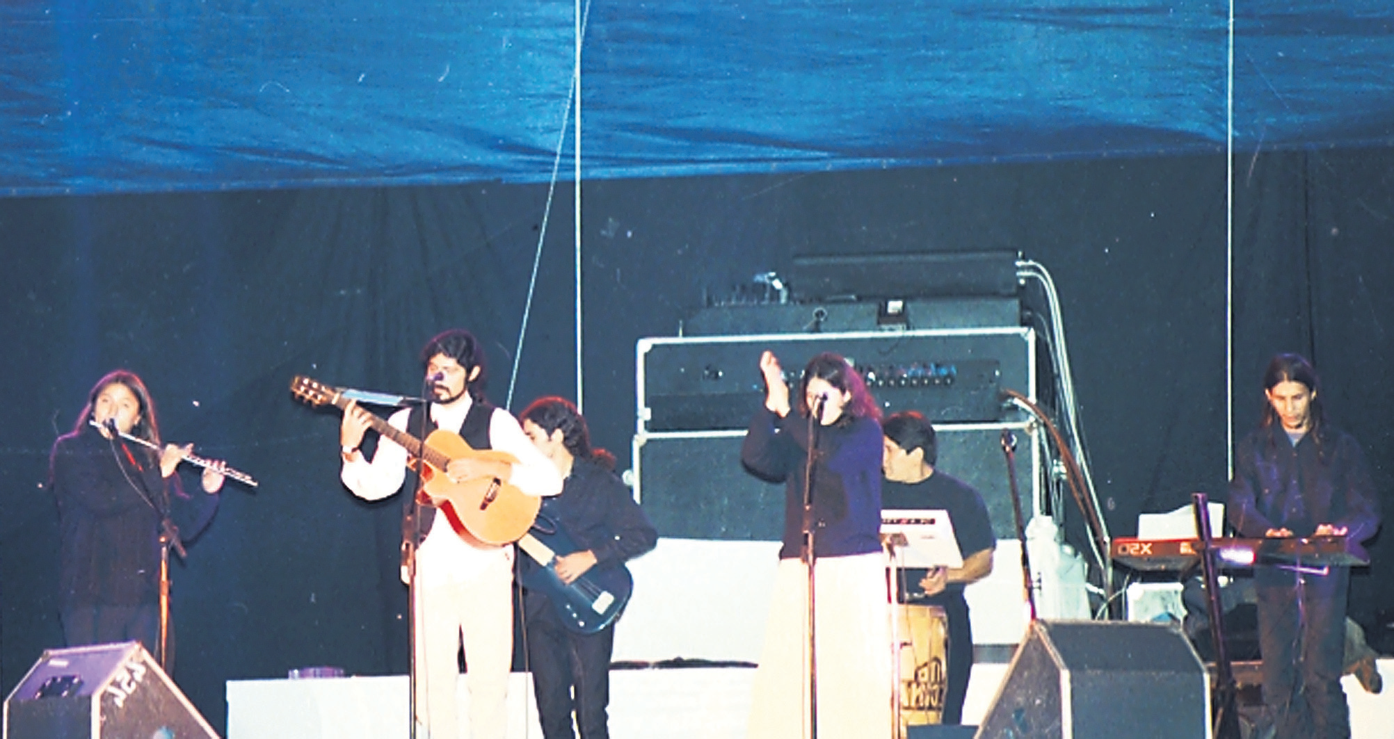 A fines de los ’90. El conjunto en una de sus presentaciones en Jáchal.