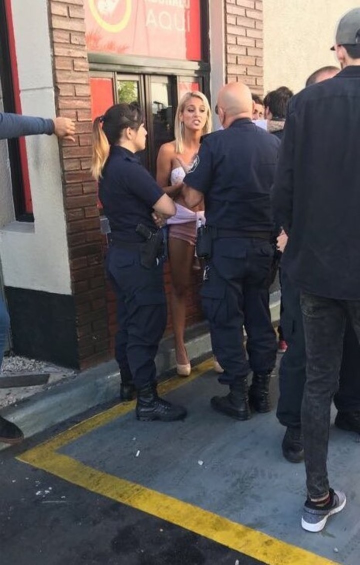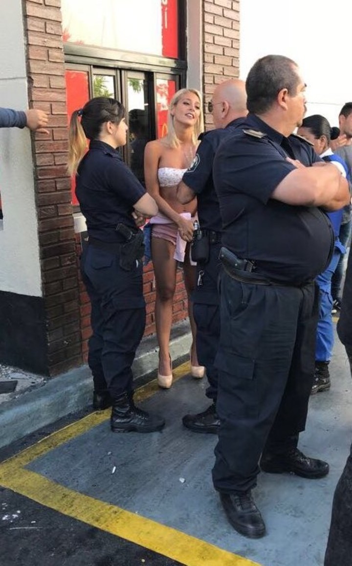 Las imágenes de Sol Pérez (23) mientras charlaba con varios oficiales de la Policía Federal en el estacionamiento de un local de comidas rápidas sorprendió este domingo a todos los seguidores de la joven modelo en las redes sociales.