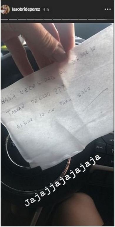 Tras pasar la noche en un conocido boliche de la zona de Costanera, volvió a su auto que había dejado en las cercanías a la fiesta. Pero parece que el estacionamiento no estaría siendo el fuerte de Sol, ya que cuando terminó la salida, entrada la madrugada, se encontró con una curiosa nota en su auto que decía: “¿Había necesidad de dejarlo tan pegado? Estuve 10 minutos para salir”, le escribió alguien en una notita.