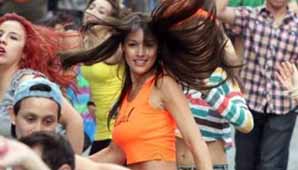 La modelo ya grabó la apertura del programa, en la que, según lo que se puede ver en las fotos, se mueve junto a un gran grupo de personas.