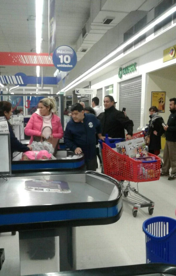 Esta vez, al ’10’ se lo vio muy relajado comprando en un supermercado de San Miguel -localidad donde viven sus suegros- junto a su pareja, Rocío Oliva.