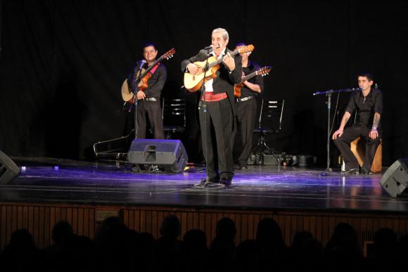 Acompañado de los músicos Los Hilachentos del Trópico y de las bailarinas Andrea López Costa y Betina Capetillo, el show empezó a las 21.40 en un complejo casi colmado, en especial por mujeres.