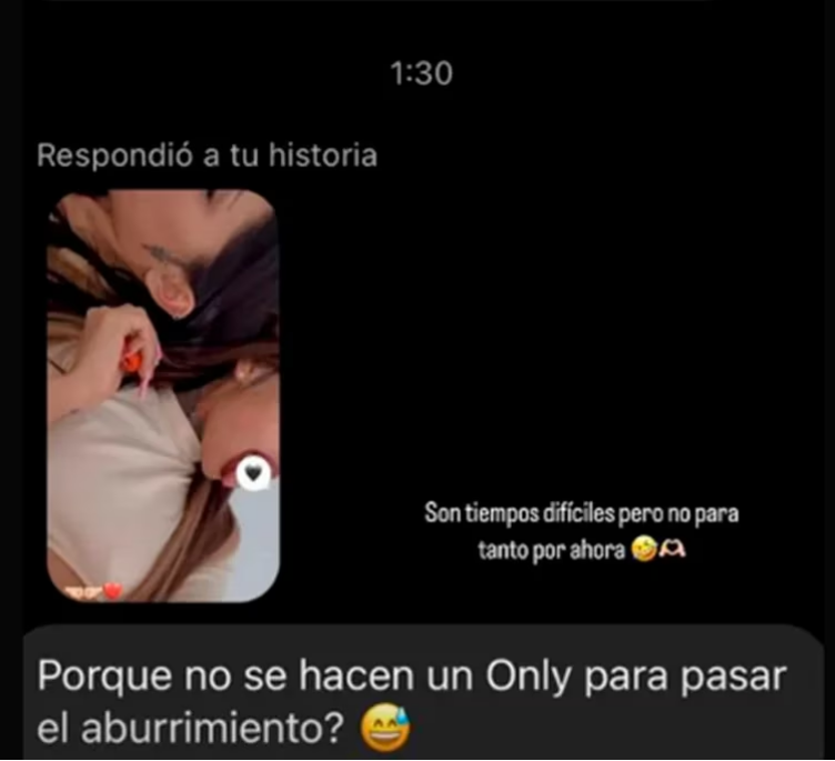 La respuesta de Tamara no se hizo esperar y fue pública. Capturó los mensajes y, junto con unos emojis que lloran de la risa, le escribió: “Son tiempos difíciles, pero no tanto por ahora”.