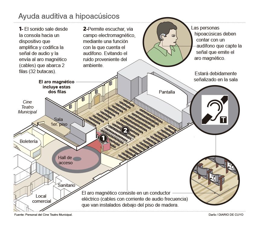 Cuánto tiempo ha pasado y cuántos habrán sido los que por incapacidad auditiva quedaron fuera de un concierto, se vieron imposibilitados de disfrutar de una película o de manera simple, participar de algún evento cultural. Una problemática tan presente y al mismo tiempo, invisibilizada para miles de personas. Una realidad muchas veces ignorada, la de la persona hipoacúsica y cuánto significa en lo personal y en lo humano, que alguien pueda sentarse en una butaca en igualdad de condiciones y tener acceso a una obra de danza, de teatro o una proyección audiovisual. A partir de hoy, se dará otro paso más para la inclusión y la accesibilidad cultural porque la sala principal del Cine Teatro Municipal de San Juan, estrenará el Sistema de Amplificación de Aro Magnético, que permite la transmisión directa del sonido al audífono que utilizan las personas sordas o con dificultades auditivas. El Auditorio Juan Victoria, la Sala de Conferencias Rogelio Cerdera de Casa de Gobierno y el Teatro del Bicentenario ya cuentan con los beneficios que ofrece esta tecnología específica y ahora la mencionada sala municipal (también llamada Espacio INCAA) se suma a esta política cultural en términos de inclusión y accesibilidad.