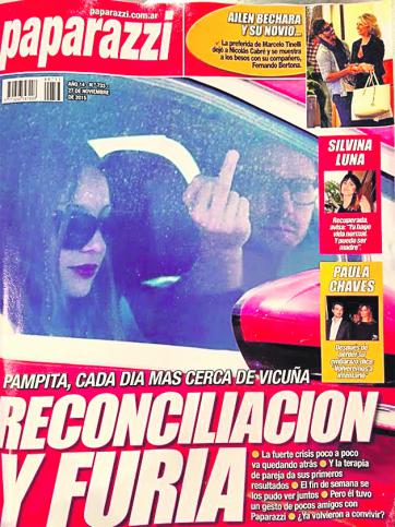 La tapa de la próxima edición de la revista Paparazzi muestra a la pareja junta viajando en un auto. Según la publicación, ellos estarían haciendo una terapia de pareja con buenos resultados. Sin embargo, el actor chileno parece seguir molesto con la prensa por cómo se tomó el tema y no dudó en dedicarle un grosero gesto al fotógrafo de la publicación.