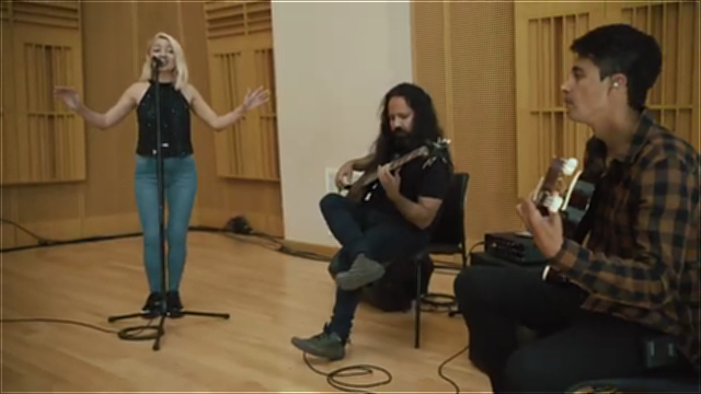 Mili Yacante. La solista folklórica presentó "Flores" y "Hasta que pueda verte". Una puesta multinstrumental, en la sala de grabación que está en el subsuelo del Teatro del Bicentenario.