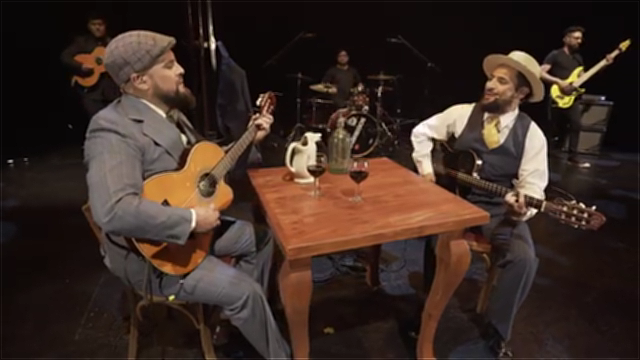 Labriegos. Héctor Olivera y toda la muchachada tonadera, grabaron "Sed de olvido" y "Reflexión". Montaron una escenografía minimalista y pintoresca, recreando un bar antiguo. Una escena de cuyanía.