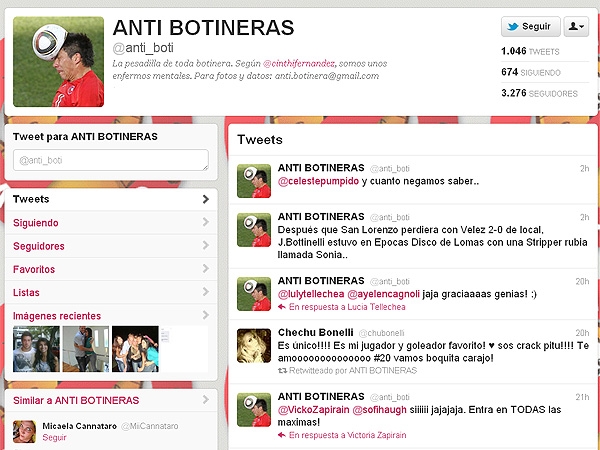 Para desenmascarar estas historias ocultas que muchas veces se hacen a espaldas de las parejas "oficiales" de los futbolistas surgió Anti Botineras (@anti_boti), la cuenta de Twitter que está haciendo temblar a todos los equipos de Primera A y Nacional B.