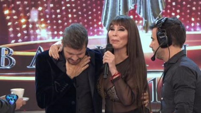 Moria Casán se acercó a ayudarlo y tomó el micrófono: "Tranquilo, Marcelo. Pensé que era una broma. ¿Necesitás agua?".