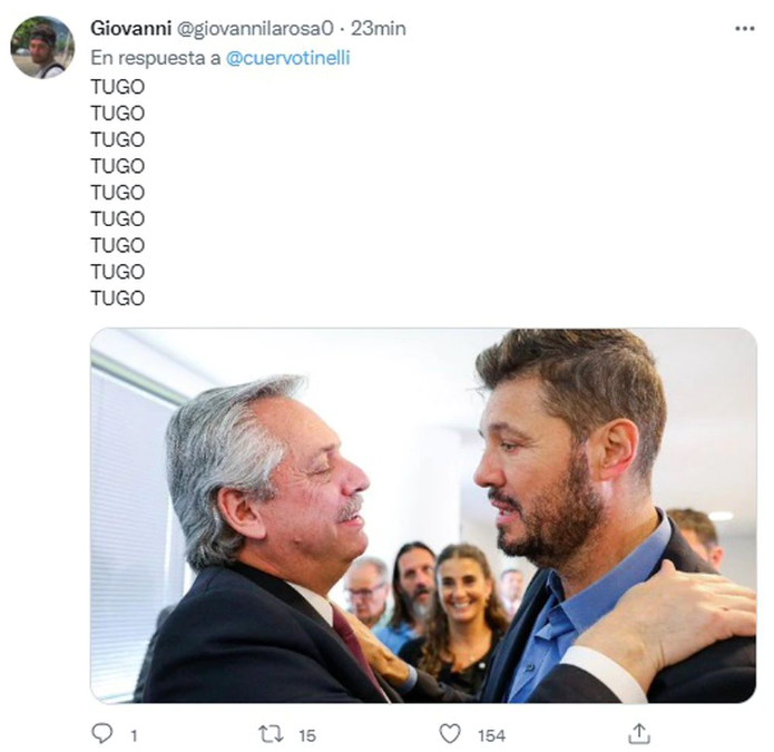 Como era de esperarse, el conductor fue duramente criticado entre memes y bromas, en especial, las que dicen “TUGO”, en referencia a la chicana política usada contra quienes acompañaron al gobierno de Alberto Fernández desde 2019.
