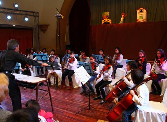 Juancito, preocupado ante unos hechos inexplicables, descubrió que el Diablo estaba haciendo maldades con unos fantasmas. Para proteger a María, Juancito debió enfrentarlo y pese a que temblaba de miedo, logró vencerlo. La perseverancia, la confianza y el amor hacia el otro salieron triunfantes, en esta historia con un final feliz. Juancito, María, el fantasma tío, el fantasma sobrino y el Diablo -con capa roja como la sangre y unos cuernos muy largos- fueron los personajes que animaron la tierna historia de ‘La calle de los fantasmas’, musicalizada en vivo por la Orquesta Escuela de Rawson, en el marco del espectáculo infantil denominado ‘De niños, con niños y para niños’. La rutinaria y tranquila siesta que diariamente transcurre en la Escuela Hogar Manuel Estrada, fue sacudida ayer por la movilización de casi 900 chicos que asistieron a esta obra infantil escrita por Javier Villafañe y adaptada especialmente por Leonardo Almazán de la compañía ‘Títeres a contramano’. Llegaron otros alumnos, además, de otros centros educativos (públicos y privados), como así también estuvo la participación de chicos de establecimientos de educación especial. Con dos funciones continuadas, los niños acompañados por sus padres disfrutaron de un momento entretenido a pleno con estos simpáticos personajes y sobre todo, de la actuación que tuvo la orquesta. El conjunto dirigido por el maestro Cerón Ortega es integrado por 25 alumnos de 6 a 12 años de edad, quienes demostraron un excelente desempeño, teniendo en cuenta que fue su primera aparición en un escenario y frente al público. Los chicos de la orquesta escuela trabajaron con cinco notas musicales, usando violas, violines y chelos. Realizaron varias intervenciones con la idea de crear climas sonoros acordes a la acción de lo que se veía en escena. Fue algo muy novedoso para muchos. El humor y el encanto que transmitieron los títeres, sumado a la presencia de la orquesta, regalaron a los espectadores bajitos una sonrisa de oreja a oreja.