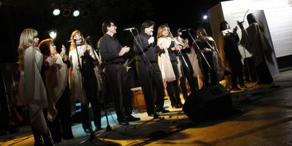 A la misma hora, el Coro Santa Gema y una orquesta infanto juvenil, le pusieron música a la peatonal Maestro de América, frente a la Casa Natal de Sarmiento.
