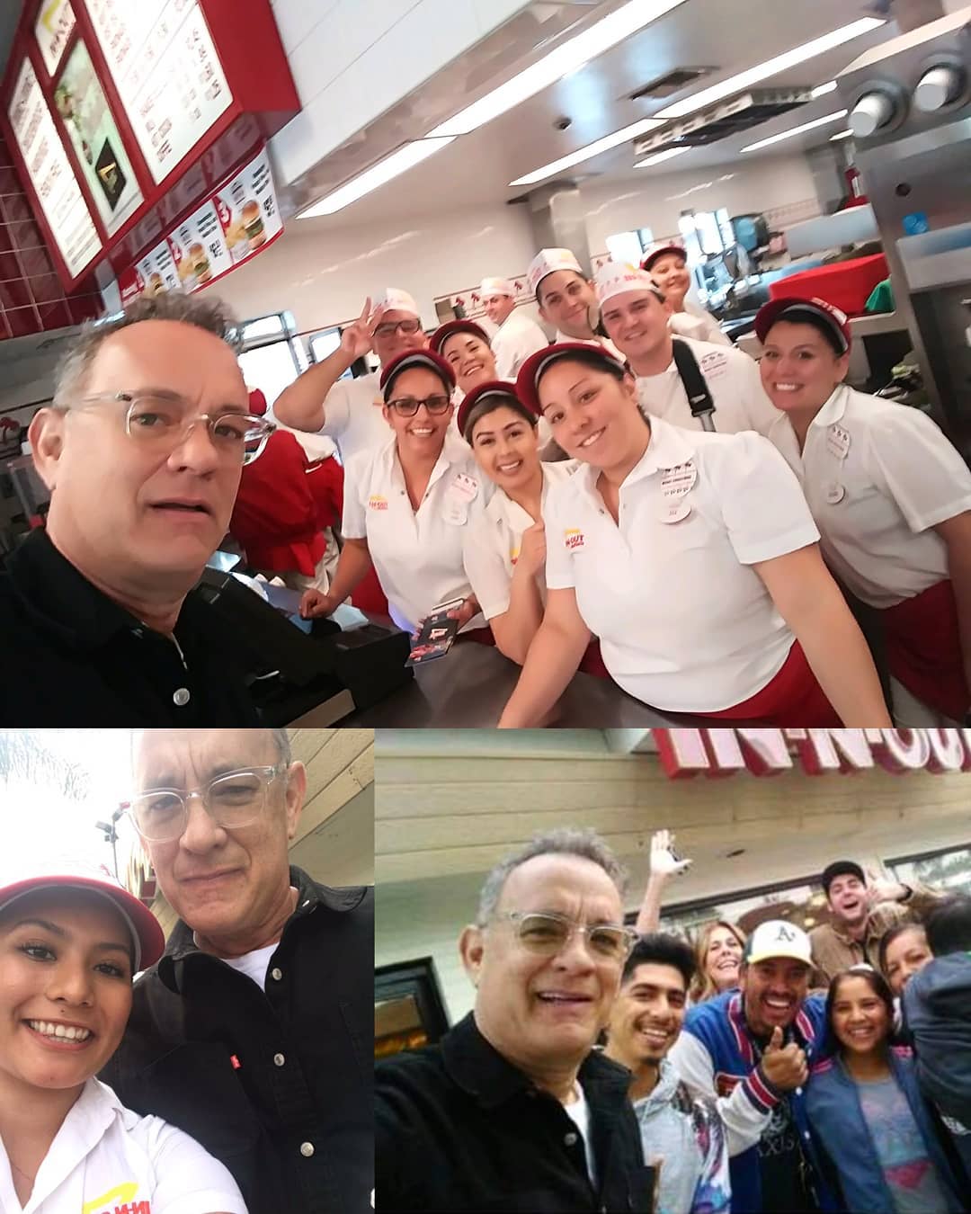 El actor estadounidense Tom Hanks, galardonado con dos Óscar y cuatro Globos de Oro, entre otros premios, este 22 de diciembre visitó el restaurante de comida rápida SoCal In-N-Out Burgeren en Fontana (California, EE.UU.) y sorprendió a todos los que estaban en el local.