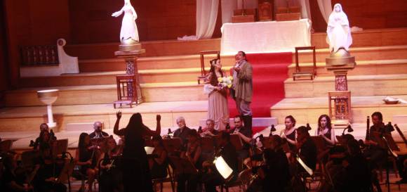 La historia de amor y tragedia que representa Tosca subió a escena en el Auditorio Juan Victoria anoche. Fue la primera ópera del año y la segunda en esta sala donde se logra una acústica sin igual. Sin ningún tipo de amplificación, las voces de los solistas fluyeron sin interrupciones para el oído y la orquesta acompañó de igual modo. Como con Traviata, los músicos (dirigidos por Lucía Zicos) se ubicaron en el centro de la escena (ante la falta de foso) y los protagonistas se movieron alrededor. En el primer acto, con la ambientación perfecta de una iglesia, comenzó a rodar la trama con las impecables interpretaciones de Daniel Costanza como el Sacristán, Juan Carlos Vassallo, dando vida al amor de Tosca, Cavaradossi, el pintor; Mariela Schemper en la piel de Floria Tosca; Nicolás Secco (Angelotti), Fabián Veloz en el papel de Scarpia y Gabriel Arce como Spoletta. En el primer acto se sumaron las cantantes del coro de la Ópera que sorprendieron al público bajando hacia el escenario por las escalinatas de la sala ataviadas como monjas, con trajes de grueso lienzo color crema (aguantando estoicamente el calor durante la función, que también obligó al público a echar mano a lo que tuvieran para abanicarse). Tosca fue también la oportunidad para que en este primer acto donde escenificaron un Tedeum, sonara el órgano del Auditorio interpretado por el maestro Oscar Rodríguez Castillo, el titular de la Cátedra de Órgano en la UNSJ. Majestuoso, con el service recién hecho, el instrumento completó la escena magistralmente.