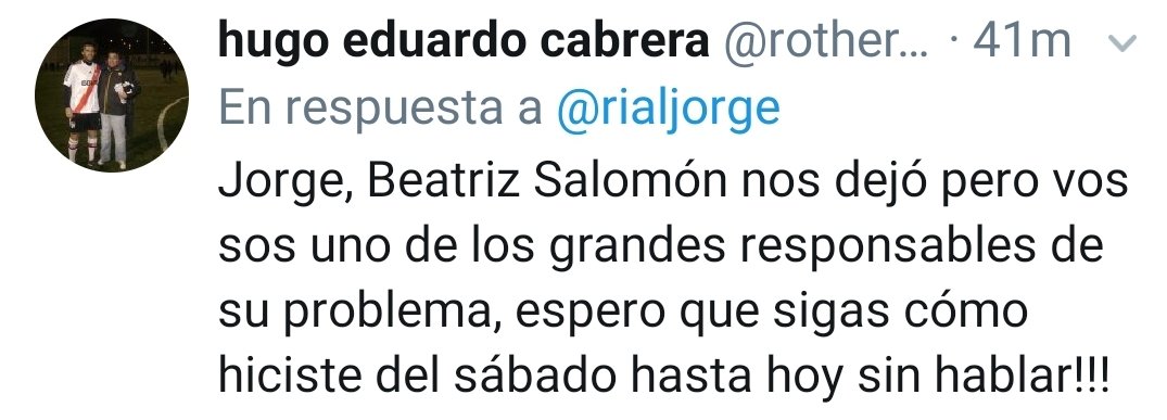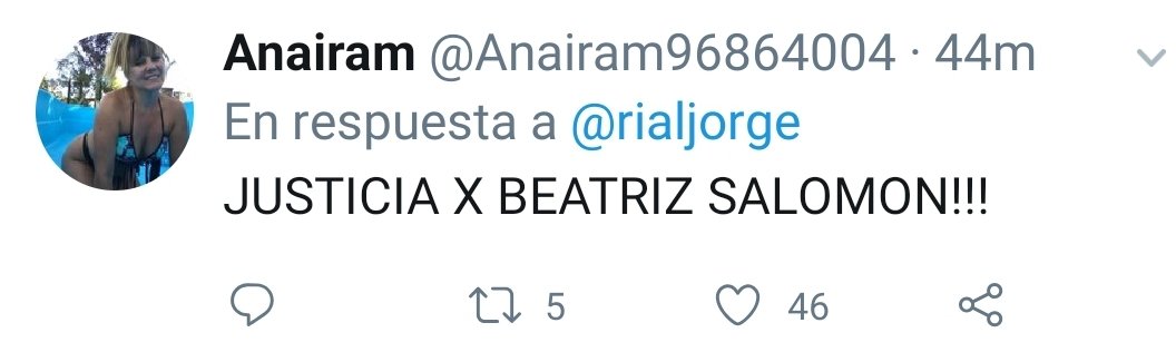 “De volver a destrozar la vida de la gente? Sos una basura Jorge Rial”; “Justicia por Beatriz Salomón”; “Menos para Beatriz Salomón que está bajo tierra”; “#JusticiaParaBeatrizSalomón; “Jorge, Beatriz Salomón nos dejó pero vos sos uno de los grandes responsables de su problema, espero que sigas como hiciste desde el sábado hasta hoy, sin hablar!!!”, fueron algunos de los mensajes que dejaron los usuarios.