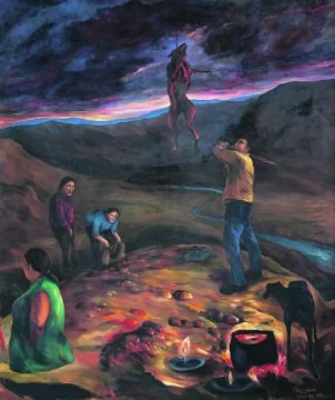 Además, Gómez Centurión, opinó sobre "lo interesante de la actitud del museo de reparar esa falta, hay artistas que han donado, artistas que se les compró, toda una política de adquisiciones, y de las que hicieron en las provincias, en San Juan me eligieron a mí. La compraron este año’, dijo el artista quién evitó revelar en cuánto fue adquirido su pintura, que data de 1998, una época en que integraba el grupo El mito real, junto a Víctor Quiroga de Tucumán, y Enrique Collar de Paraguay, con quienes trabajaron durante 10 años rescatando mitos y leyendas de la Cordillera y religiosidad popular.