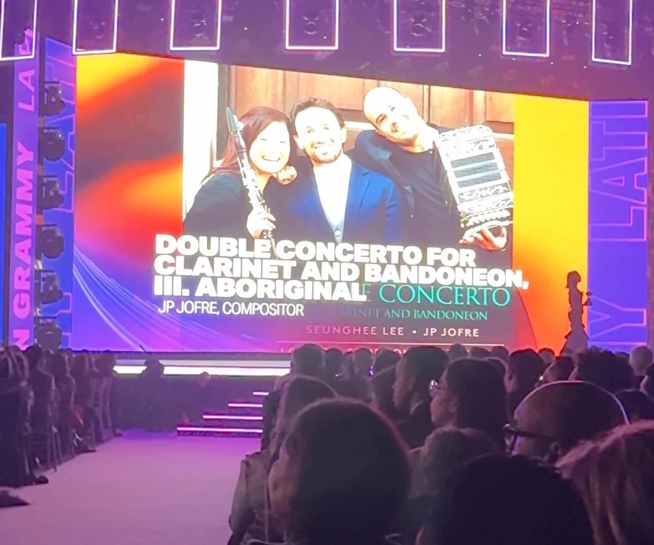 Ya en su recta final, el 2023 dejará muy buenos recuerdos a Juan Pablo Jofré. Es que además de llevar su música a escenarios del mundo donde ha sido ovacionado, el bandoneonista que en 2009 se radicó en Estados Unidos -residencia que ahora alterna con Corea del Sur- anotó otro gran logro, que infla el pecho de su tierra natal: es el primer sanjuanino que entra como nominado, dos veces y de forma consecutiva, a las ceremonias anuales del Grammy. La primera fue este verano, la 65ta edición del Grammy que se entregó en Los Ángeles, integrando el rubro Mejor Compendio Clásico por "Aspire", disco que grabó en 2022 junto a Seunghee Lee y la London Symphony Orchestra bajo la batuta del maestro Enrico Fagone. La segunda fue el jueves pasado, en la 24ta entrega del Grammy Latino que se realizó en Sevilla, España. Hasta allí viajó como candidato en el rubro Mejor Obra/Composición Clásica Contemporánea por "Aboriginal", tercer movimiento del Doble Concierto para clarinete y bandoneón, que forma parte de Aspire.