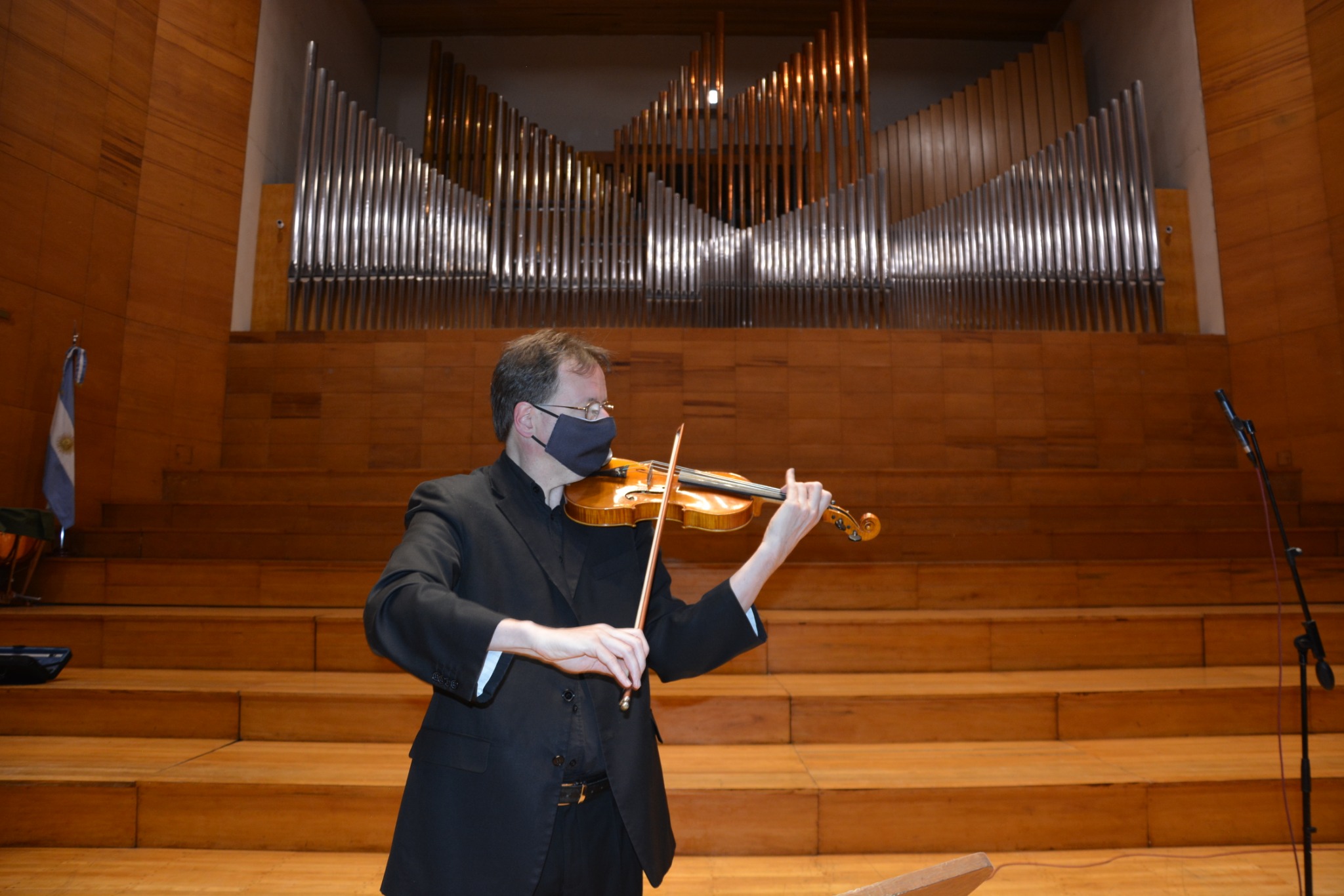La pandemia no da respiro. Nadie sabe cuándo terminará y si se recuperará cierta "normalidad" que había antes de 2020. Así como a todas las disciplinas artísticas, esta situación afectó profundamente a las orquestas sinfónicas y coros de todo el mundo. Pero en medio de todo este desaguisado, el maestro Emmanuel Siffert no se resignó. La imposibilidad de ensayar con la Orquesta Sinfónica de la UNSJ -que dirige-, el confinamiento y las pocas alternativas para tener un horizonte más o menos organizado en el trabajo cotidiano, fueron factores que lo obligaron a cambiar la rutina. Dejó por varios meses la batuta y retomó el violín. Y con intacta necesidad de exploración y de búsqueda musical, hizo un meticuloso estudio de obras de compositores de su preferencia, entre las cuales eligió de manera especial las partituras de un autor y músico sanjuanino, Miguel Ángel Sugo. Las preparó y las grabó en la misma sala del Auditorio Juan Victoria el año pasado. Después de un extenso proceso de edición y posproducción, el trabajo quedó terminado y pulido. Hoy, la pieza "Sotiksom" para violín solo; junto a otras seis pistas, conforman el nuevo álbum solista de Siffert, denominado precisamente "De la batuta al violín", que está en línea a través de una productora discográfica europea VDE-Gallo. Esta obra de proyección internacional, cuenta además con el acompañamiento instrumental de la guitarra de Rolando García Gómez -responsable del Auditorio- y el soporte técnico sonoro de Javier Domínguez, quien se encarga de realizar las grabaciones para la Sinfónica de la UNSJ.