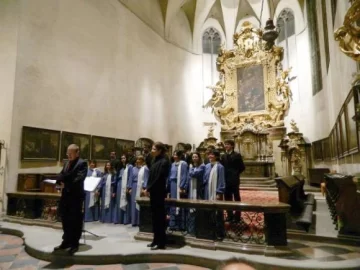 Algunos se quedaron para disfrutar unos días más del viejo continente (después de todo, aseguran, uno nunca sabe si podrá volver). Otros (que lo lamentan), tuvieron que volver. Pero ambos grupos siguen comunicándose vía Facebook, comentando las fotos que atesoran inolvidables momentos vividos en distintas ciudades europeas. Son los integrantes de los dos coros dirigidos por María Elina Mayorga de Blech (el Beruti y el de la UCC), que junto a los músicos de Confluencias todavía paladean la gira de recitales que hicieron en Budapest (foto arriba), Praga (foto abajo, en la Iglesia de todos los santos), Salzburgo, Viena y Köszeg, entre otros lugares que aún deslumbran sus retinas.