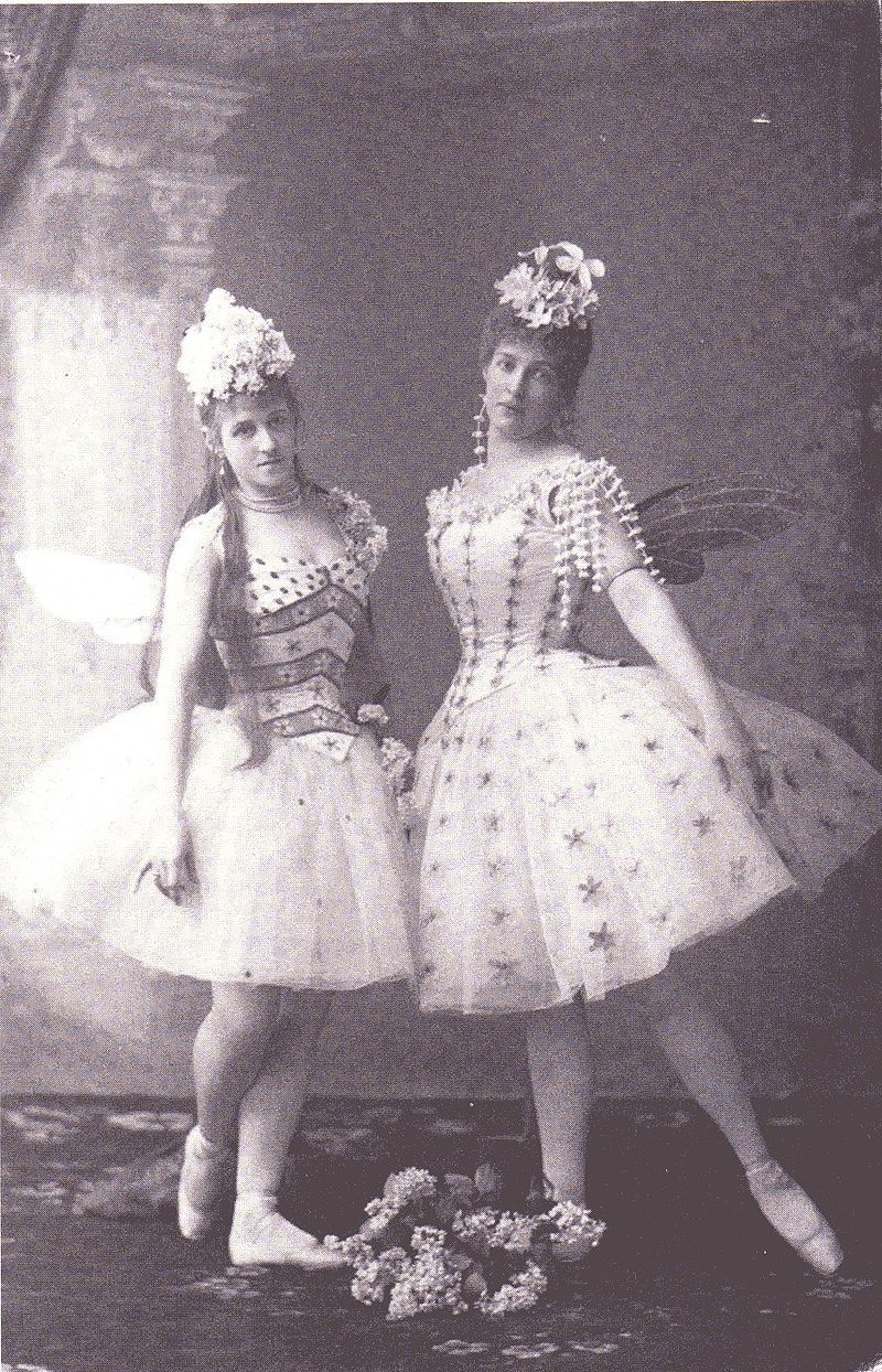 El elenco original estelarizado por Feliks Krzesinski (Rey) y Giuseppina Cecchetti (Reina), Carlota Brianza (Princesa Aurora), segunda ; Pavel Gerdt (Príncipe Désiré), Marie Petipa, hija de Marius (Hada de las Lilas), penúltima foto, a la derecha; y Enrico Cecchetti (Carabosse y Pájaro azul) y Varava Nikitina (Princesa Florina), última.