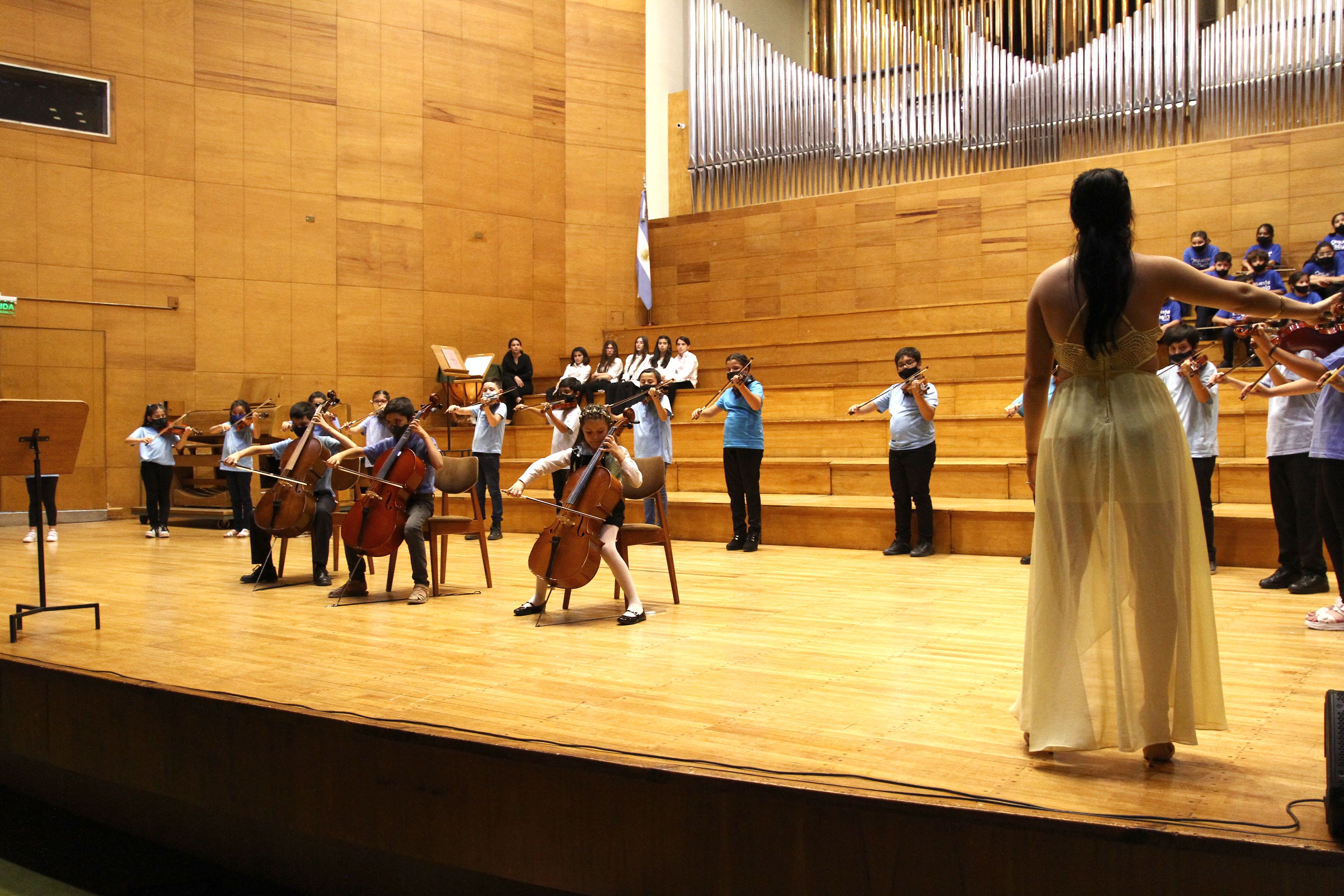 El presidente de la Fundación Orquesta Escuela, Jorge Rodrigo, actuó como maestro de ceremonias y fue presentando a los músicos y comentando sobre las actividades de los distintos grupos, destacando el funcionamiento de los nuevos núcleos, como en el caso de Albardón cuyos violines fueron adquiridos con el aporte del festival solidario Por Vos 2019 motorizado por el programa "A todo o nada’ de Radio Sarmiento. Los directores y profesores que condujeron a los niños de los distintos cuerpos fueron Julieta Romera, Rosabell Mederos, Carolina Pedraza e Hildemaro Villarreal. Este año la fundación sumó al equipo como director pedagógico el concertino de la Camerata San Juan, Pablo Grosman.
