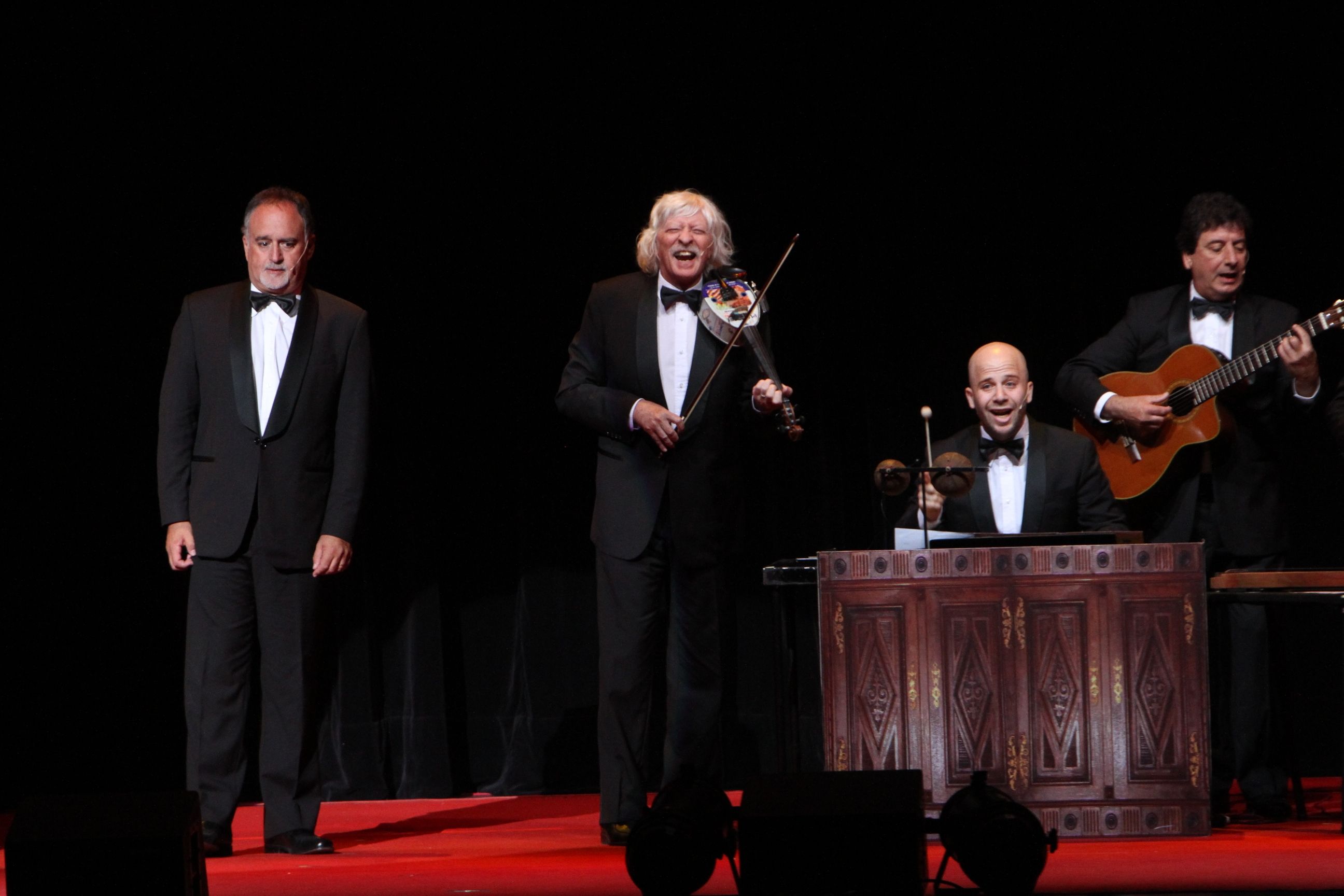 En un hecho sin precedentes y luego de años sin pisar suelo sanjuanino, el quinteto hizo delirar a sus seguidores con las piezas más aceitadas de su repertorio. Entre ellas: Entreteniciencia familiar, con Mundstock como un ignorante presentador que toma a risa las interpretaciones de un conjunto de música clásica, que cree que Vivaldi es un restaurante y no el nombre de un compositor; o Lo que el sheriff se contó, una canción que hace alardes de las hazañas de un comisario que logró poner tras las rejas al forajido Rick. También es de destacar Buscando a Helmut Bösengeist, otra escena en la que Mundstock vuelve a llevar la batuta, con juegos de palabras de textos geniales; así como La hora de la nostalgia, donde recrea a un veterano cantante al que le falta la memoria, se le traba la lengua y le salta la dentadura postiza, que es entrevistado en un loco ir y venir de gags para el recuerdo. Entre las hilarantes frases de esta conversación, algunas de las que más euforia causaron en la gente fueron: “Ah, no, yo compro un libro que esté escrito. Hay que hacerse respetar” o “Un libro no escrito más que un libro es un cuaderno” o “He intentado leer un cuaderno pero con el primer renglón en blanco, el segundo renglón en blanco, me aburro”.