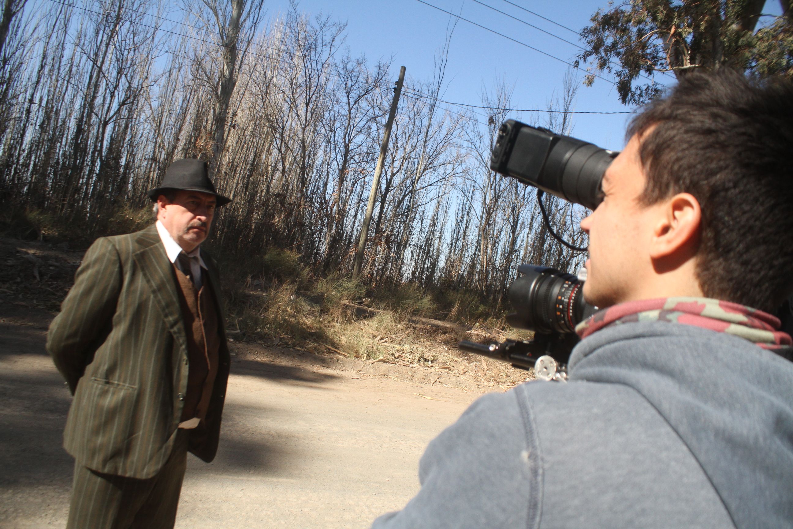 DIARIO DE CUYO estuvo presente en el set, para seguir de cerca los pormenores de la grabación que tuvo lugar en 9 de Julio. Una finca ubicada por calle Dos Álamos y Paraguay, fue elegida como locación más adecuada a las pretensiones del numeroso equipo producción. Ayer, fue un día crucial y agotador. Desde la mañana y sin parar hasta la caída del sol, la compleja puesta y montaje no tuvo descanso. Es que se trataba de la jornada de registro de las escenas clave y otras muy importantes del corto. Emulando la emboscada que le preparan a Jones y para que la acción sea lo más creíble posible, se debieron repetir varias veces las tomas y planos. Ver qué encuadre quedaba mejor, qué plano era el exacto, qué movimientos y posturas de los personajes, considerar los ruidos de ambiente, la dirección de la luz… ardua fue la tarea de convertir en imagen el guión; y las definiciones eran barajadas por el staff al momento de trabajar; todo se consensuaba, más allá de los roles establecidos, rotativos. Sin embargo, la experiencia de abordar un rodaje -para todos los que estaban involucrados en el proyecto, estudiantes, bolo, extras, camarógrafos, técnicos, asistentes y colaboradores- fue muy satisfactoria.