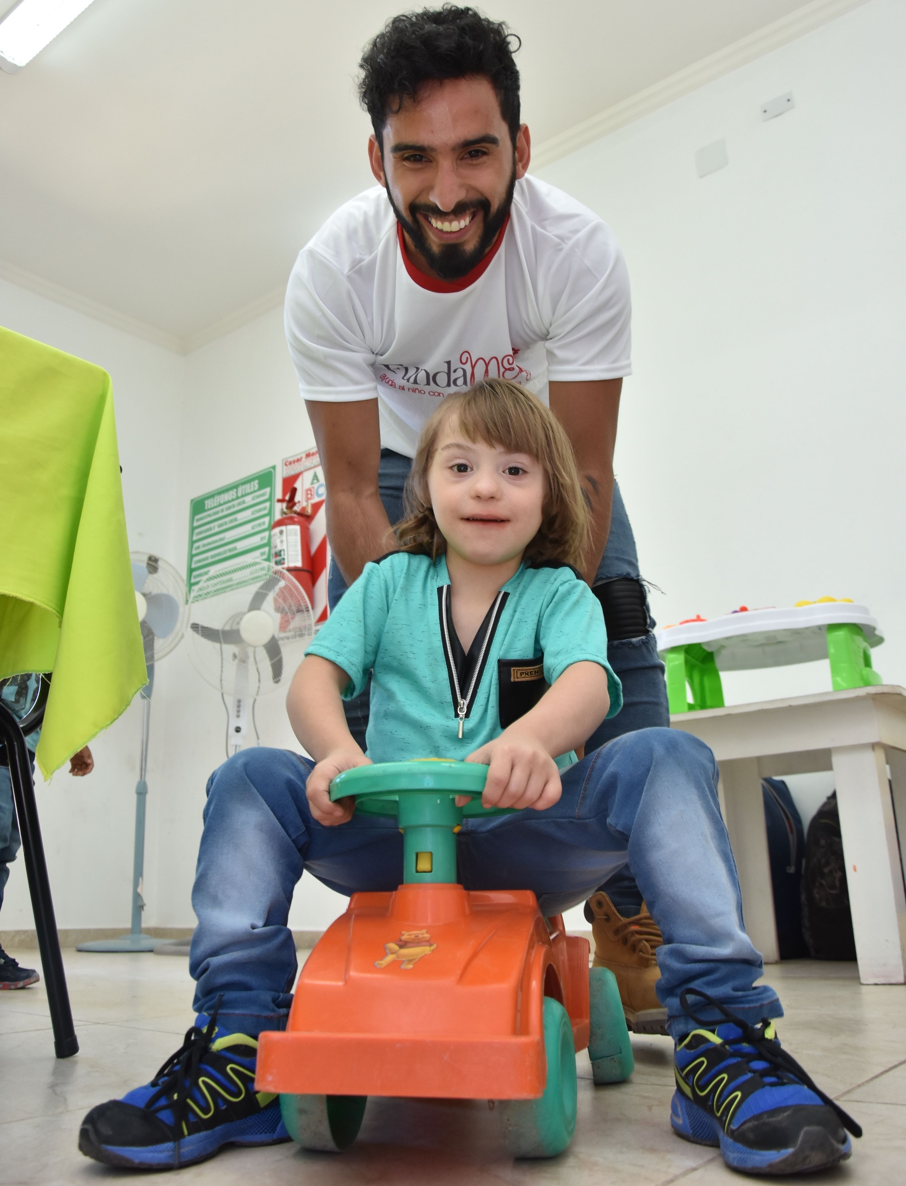 Una vez que se flasheó con todos, Usandivaras se sentó en una mesita a encastrar bloques y armar diferentes figuras con los chiquitos, a empujar en autito de otro de ellos y a empaparse de las necesidades más próximas de la fundación.
