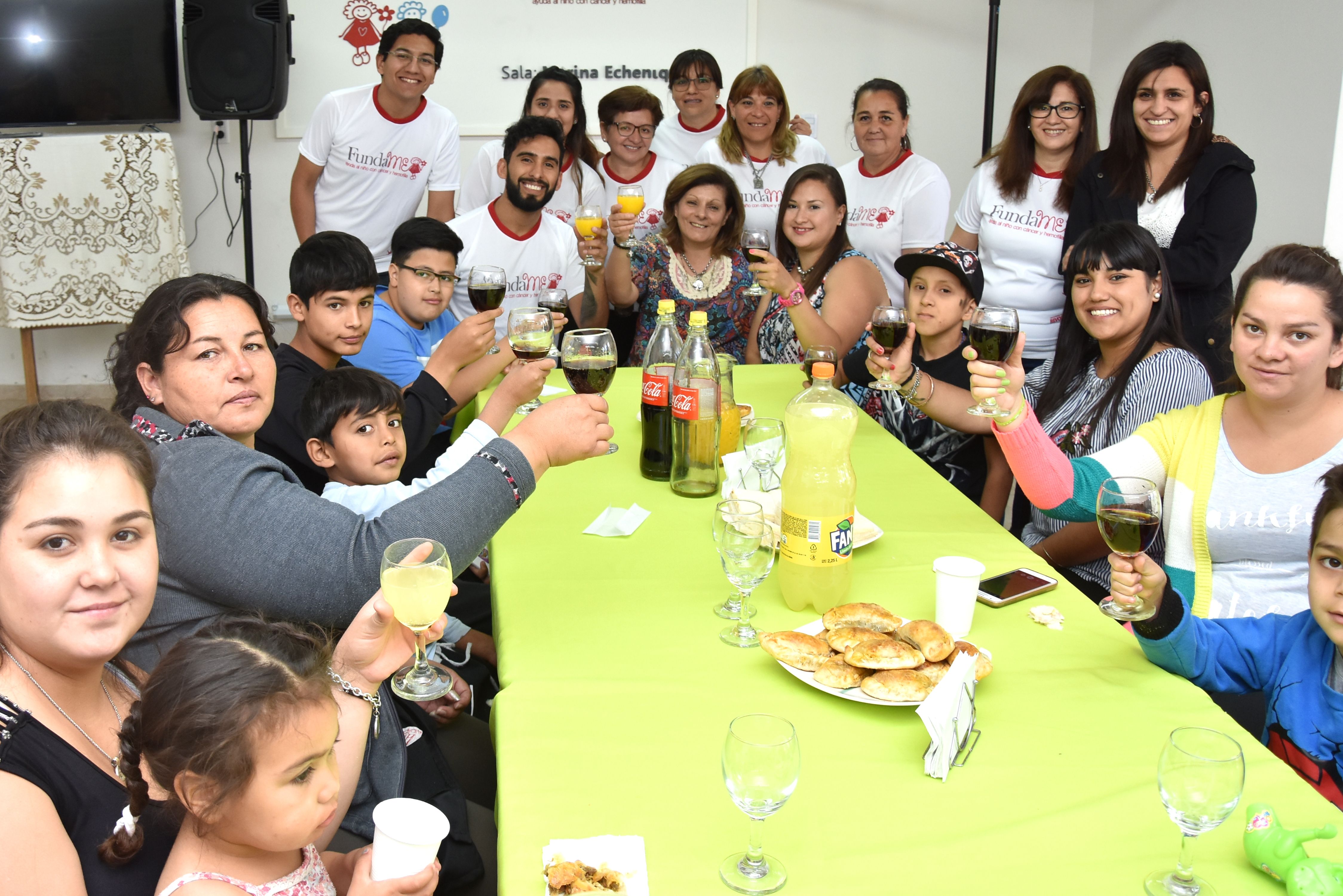 Para que la recepción fuera completa, no faltaron los sándwich y las empanadas que compartieron los jovencitos, sus acompañantes y el personal, con el invitado de honor que en voz alta dijo: "¡Todos levantemos las copas y los vasos!", y la gran mesa se unió en un chin chin para brindar por el feliz encuentro.