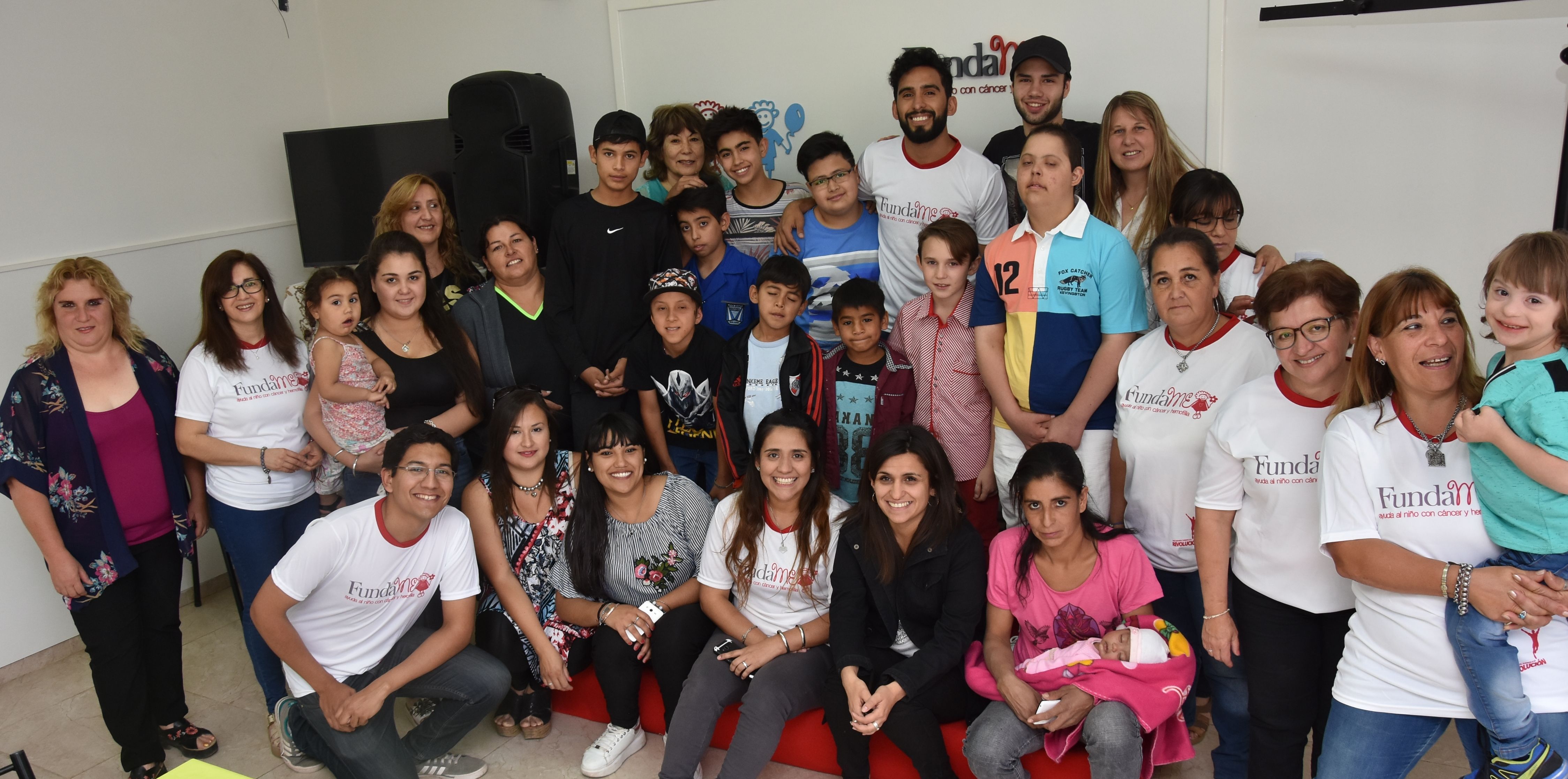Todos con el bailarín. Gabo con los chicos, sus acompañantes y el personal de Fundame.