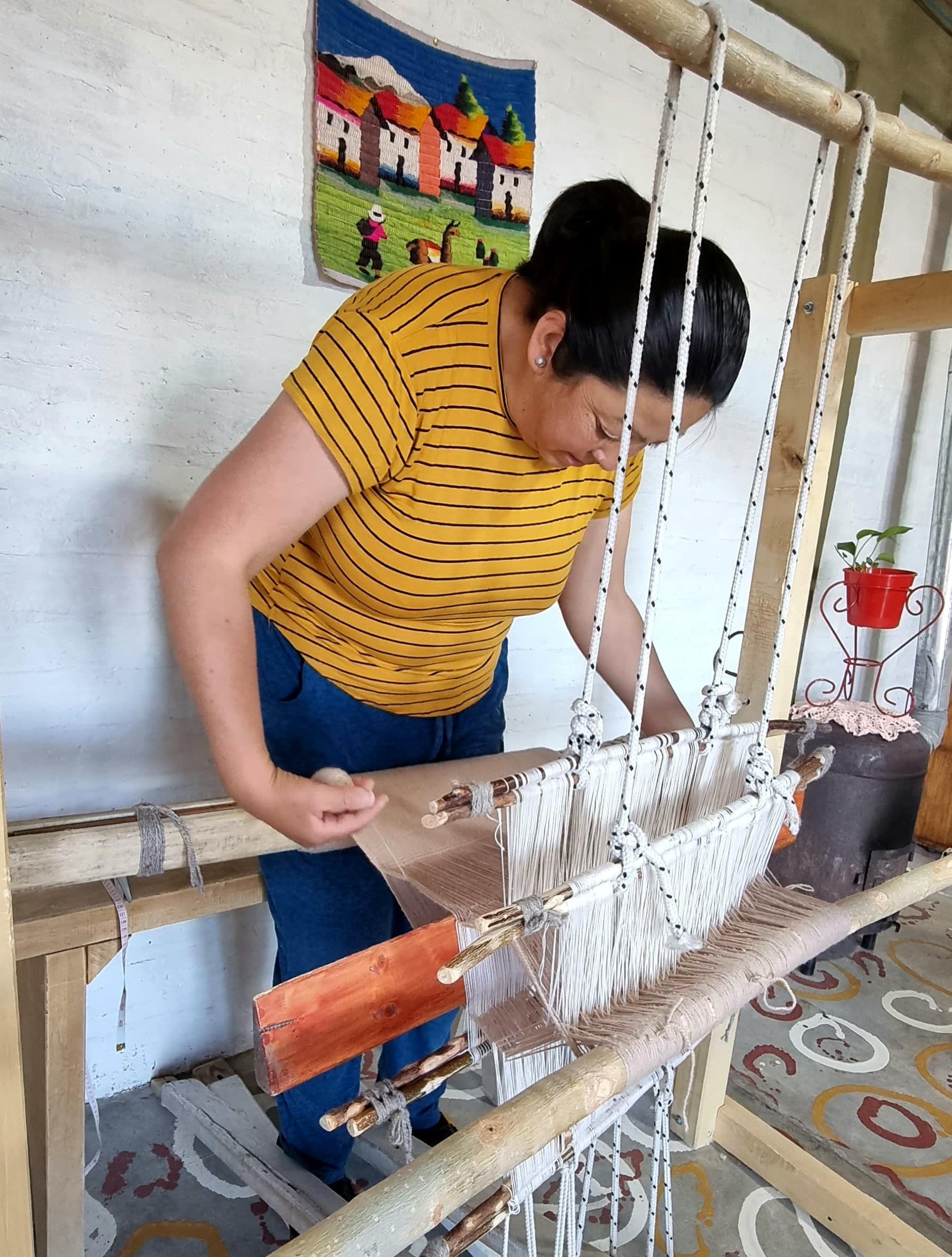 "Siempre que termino una pieza voy a verla a doña Ermela para que me dé el visto bueno, también estoy tejiendo en el telar de ella. Cuando le conté lo del manto me dijo ‘ves que hay que ponerle ganas, ponerle entusiasmo y mostrar lo que uno sabe hacer’, así que no deja de ser profesora ella".