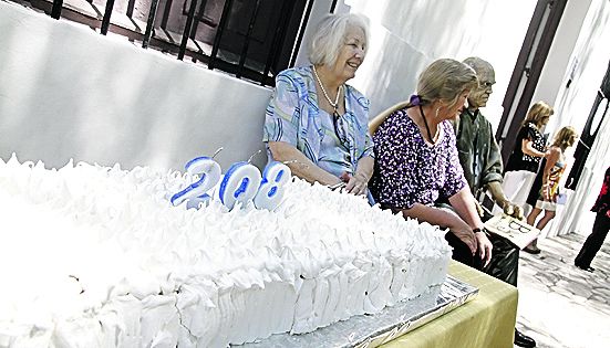 A medio día, en la puerta, junto a la estatua de Domingo Faustino, instalaron una mesa y una gran torta de merengue con las velitas armando el 208 aniversario. El grupo de mujeres, encabezado por la directora del museo María Rosa Plana, junto a las integrantes de la Asociación Amigos de la Casa Natal y del Ateneo Cultural, fieles custodios de la historia sarmientina, cantaron el feliz cumpleaños y la conmemoración se convirtió en fiesta.
