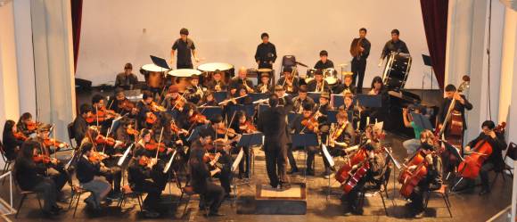 Con violines, violas, contrabajos, entre otros instrumentos, el conjunto subió a escena el martes en el Teatro de Albardón y anoche en la plaza de Caucete.