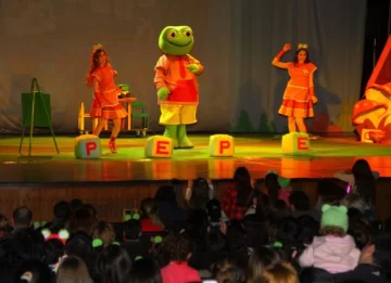 El Teatro Sarmiento recibió un gran contingente de niños de diferentes edades que con mucha ansiedad aguardaban la entrada en escena de El Sapo Pepe. Canciones, alegría y mucha ternura reinó en el espectáculo infantil que se llevó a cabo ayer por la tarde. Las plateas estuvieron colmadas por los pequeños que llevaban vinchas, remeras, golosinas, gorras y hasta disfraces completos del simpático personaje verde que deleitó a todos junto a las Pepas y sus amigos Coco, el bicho bolita y Don Cartero. El espectáculo comenzó cuando Las Pepas (Sofi y Luli) salieron a saludar al público y con una canción ‘despertaron’ a Pepe de su siesta. El grito de alegría de los chicos fue arrollador. Mientras que los padres se mostraban contentos y relajados mirando como sus hijos disfrutaban del show, saltando, bailando y hasta jugando con burbujas que salían desde el escenario.