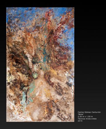 En el Muntref se exhiben tres obras recientes de Gómez Centurión, todas del año 2015, de grandes dimensiones y realizadas en técnica mixta sobre tela: ‘Finitud‘, ‘El fin de los tiempos‘ y ‘Mole‘.