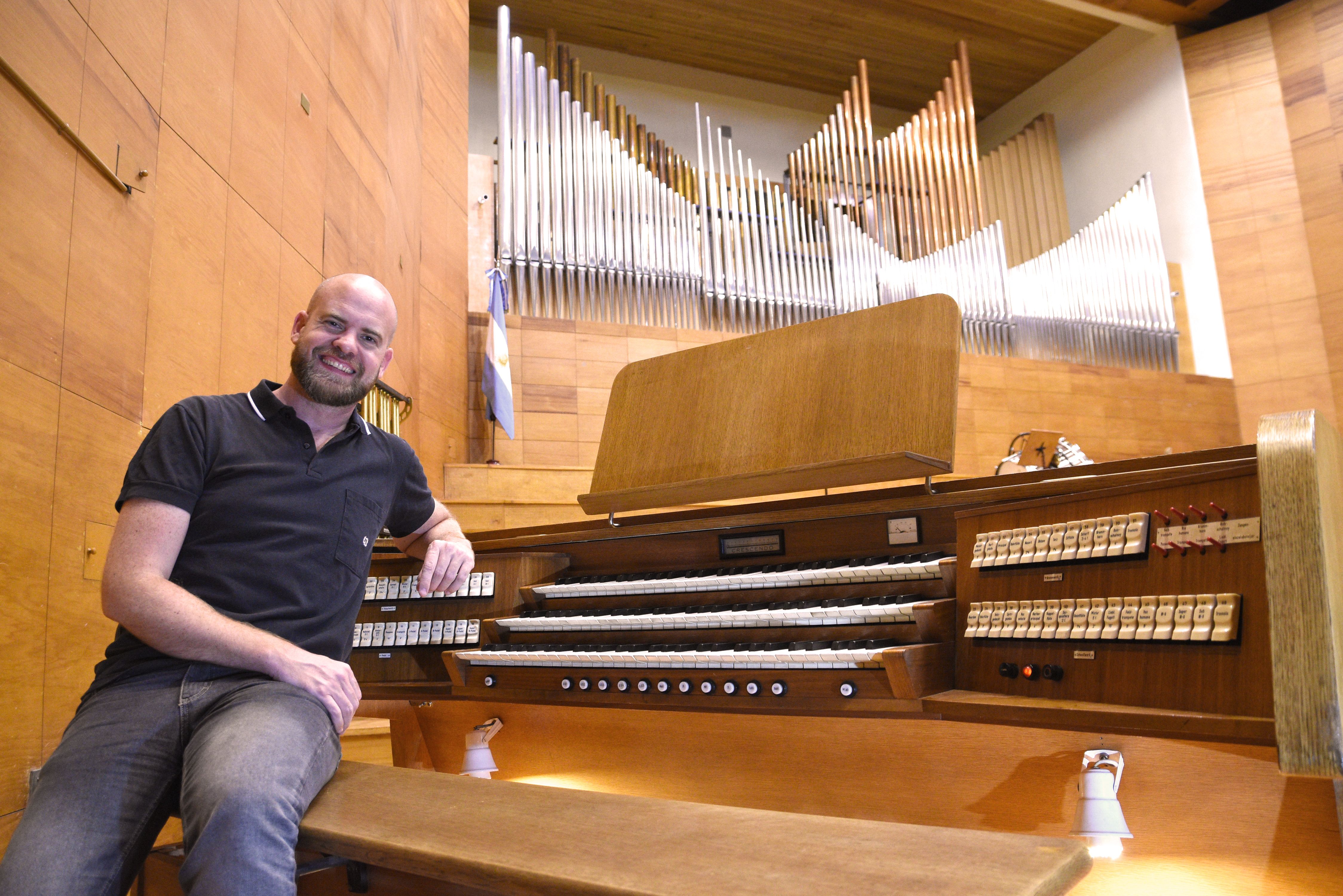El organista Matías Sagreras tiene un poco más de un año como titular de la Cátedra de órgano del Departamento de Música de la UNSJ, y en el poco tiempo que ha pasado desde el regreso a la actividad ha empezado a desplegar su proyecto, que tiene como objetivo final que el órgano Walcker de 3.565 tubos del Auditorio Juan Victoria cobre vida y se integre al quehacer cultural de los sanjuaninos. Después que fue restaurado, el músico porteño participó de tres conciertos y estrechó lazos con la Orquesta Sinfónica de la UNSJ, con la que volverá a tocar mañana (ver aparte). Pero la idea del también director de música sacra de la Basílica del Santísimo Sacramento de Buenos Aires y de la Basílica del Santísimo Rosario, es apostar a que el gran órgano sea más popular, que haya músicos que se animen a planificar conciertos usando órgano y que los alumnos de la Escuela de Música puedan comenzar a estudiarlo antes; para así incrementar la matrícula de la cátedra que actualmente es de tres inscriptos después de años sin tener ninguno.