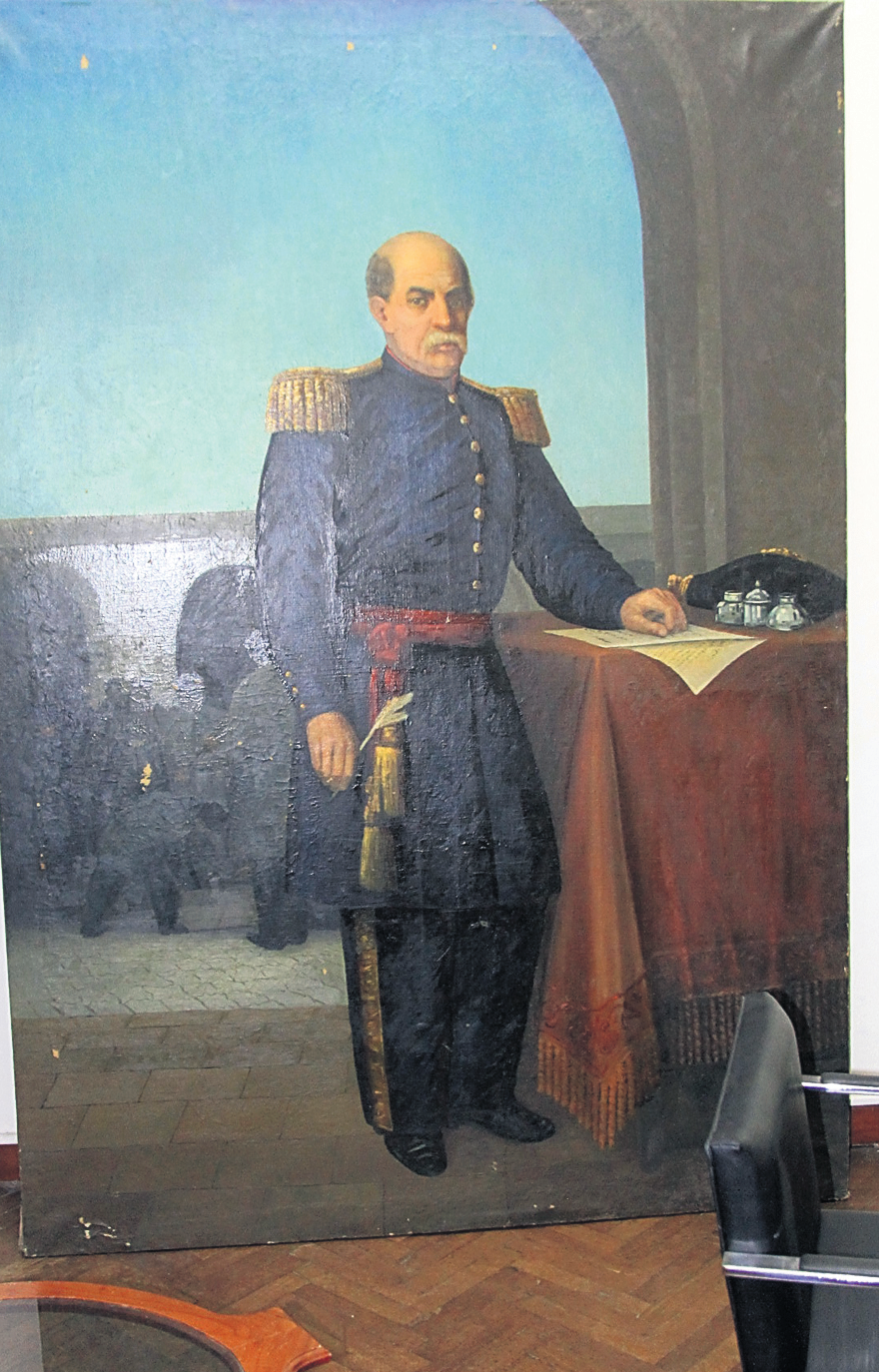 "Creemos que la obra salió en calidad de préstamo de Casa de Gobierno para ser exhibida o incorporada a algún nexo narrativo de alguna exposición; pero no está dentro de los registros del Museo Franklin Rawson que haya sido en calidad de préstamo para esa institución. Por eso entendemos que, como es una obra de corte histórico, fue seguramente gestionada o pedida por el Museo Histórico Provincial, por la carga que la obra en sí implica. Y es ahí donde ha permanecido guardada en los depósitos durante mucho tiempo", se explayó el actual director del Bellas Artes local. "Cuando el Museo Histórico empieza, el año pasado, todo el registro de inventario de su patrimonio, con la ayuda de Roberto Amigo, encuentra en uno de los depósitos esta obra que estaba embalada, muy bien guardada, pero que no pertenecía al patrimonio de esa institución; y finalmente se decide que nuevamente sea trasladada a su lugar original", señaló Díaz Ruiz, quien informó que desde el Museo de Bellas Artes están haciendo las gestiones pertinentes para tener acceso a la obra de Torres, con el objeto de realizar limpieza, restauración y puesta en valor, para que luego vuelva a lucirse en la Casa de Gobierno.