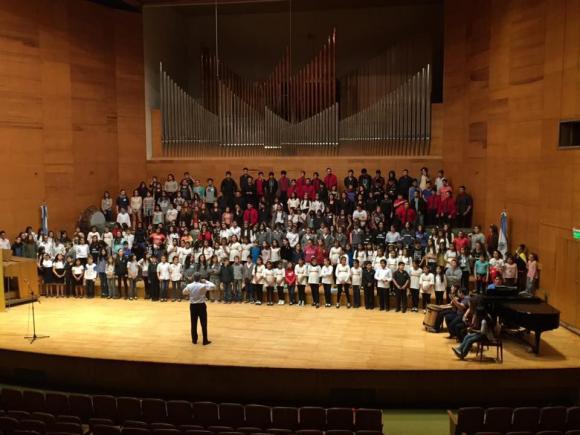Unos 250 niños y jóvenes provenientes de coros de distintos rincones del país y de Chile, entonaron algunos temas de su repertorio, y luego unieron sus voces en dos temas: El quichuista Don Sixto de Inchausti, dirigida por el Mº Guillermo Pellicer (Córdoba) y luego Mi ciudad, canción mexicana dirigida por el Mº Jorge Cozatl.