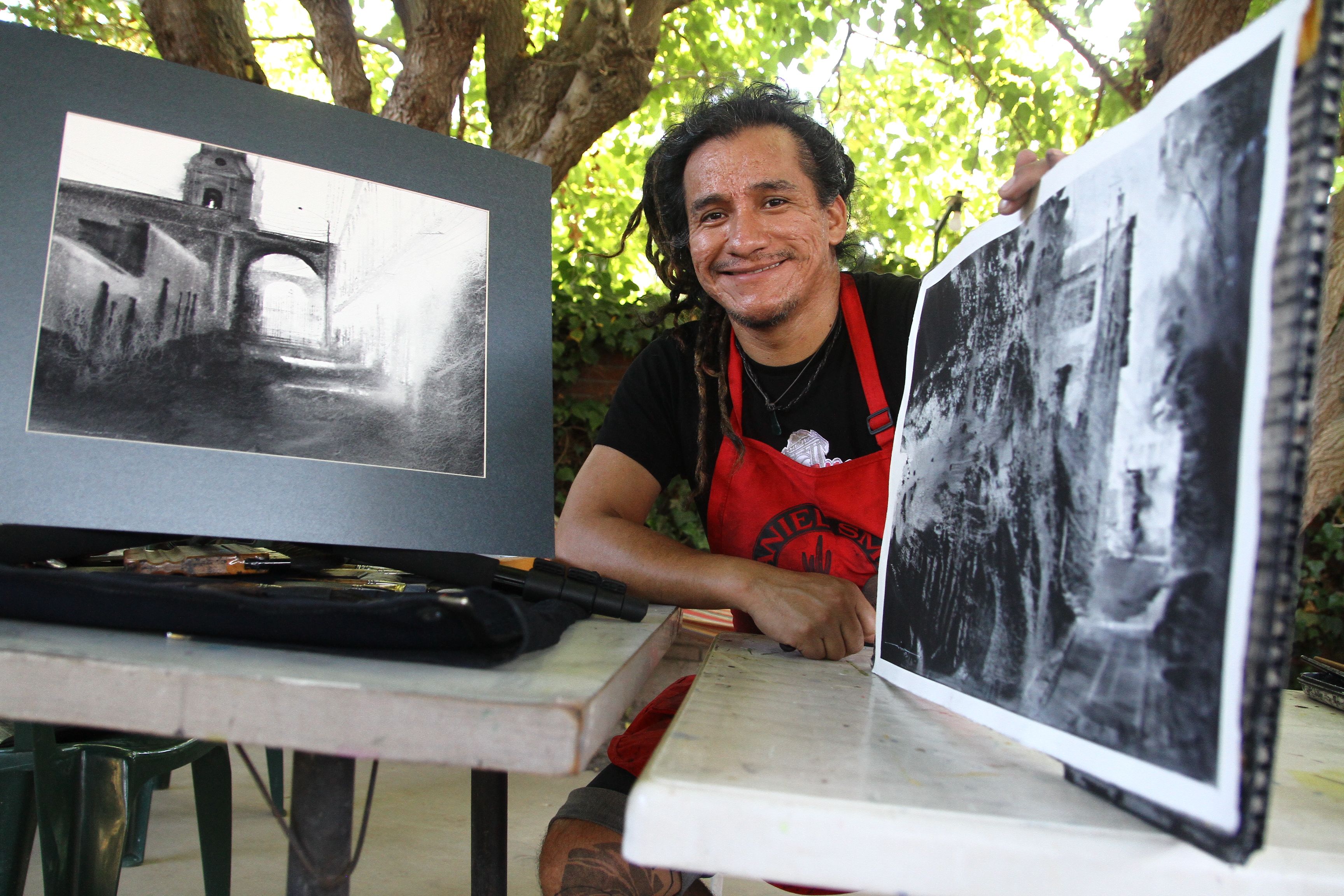 "Hace mucho dejó de ser la hermana menor, como el grabado, de la gran pintura, del óleo en el lienzo. Es más, hay muchos colegas que se animan y la acuarela es aceptada en grandes exposiciones", comentó. Oriundo de Ayacucho, su tierra natal, se ha diferenciado de otros artistas por su estilo y temática, creando un mundo de imágenes que en su mayoría son monocromáticas o en blanco y negro; y dejando expuesto todo aquello que lo cautiva y asombra de la realidad. Su particular forma de ver el mundo, con materiales simples pero muy comunicativos.