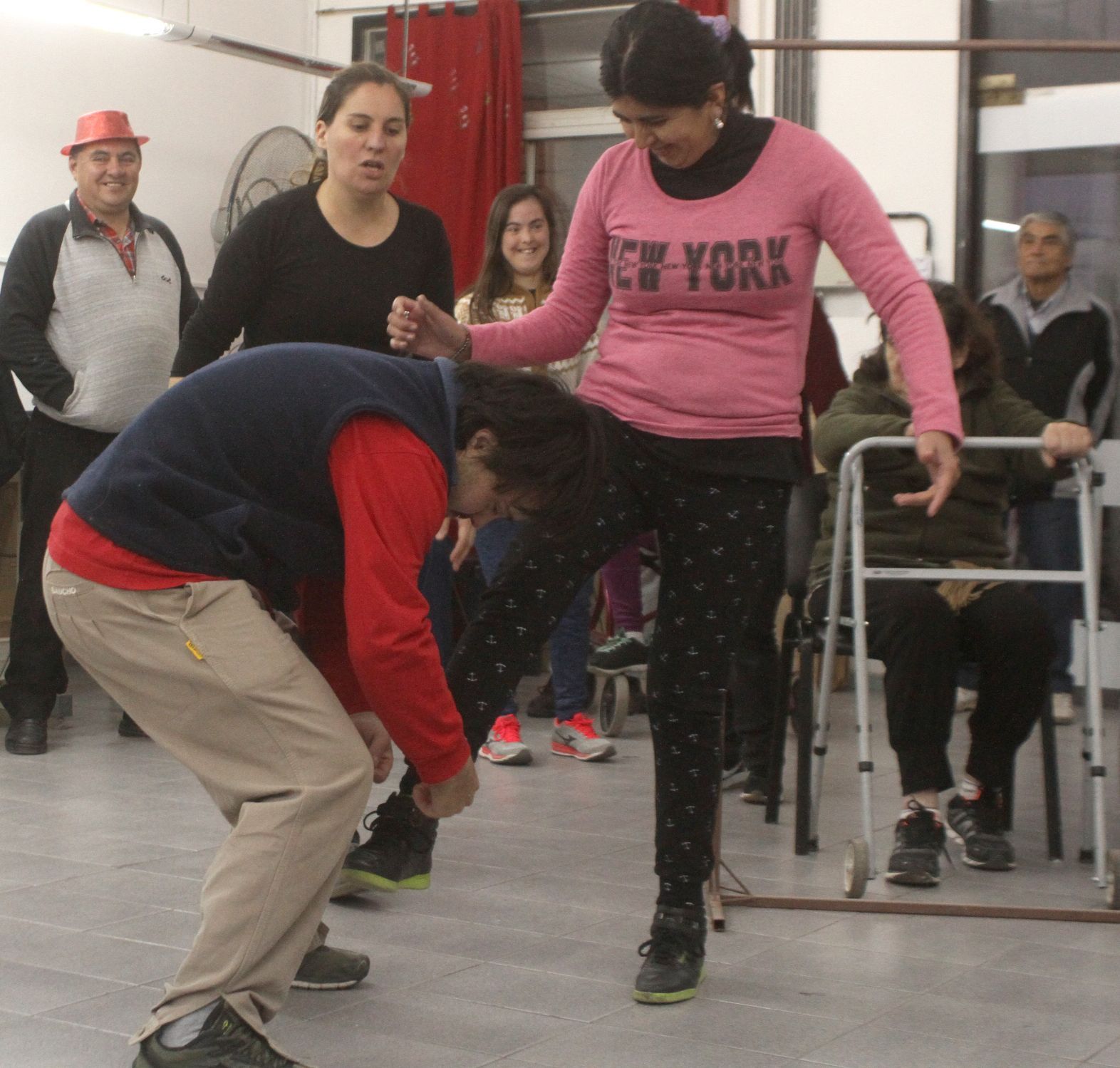 "Con la música, un poco de entusiasmo y de paciencia se pueden hacer maravillas con ellos. Hace mucho que trabajan conmigo en danzas folclóricas y como tienen esa base, a partir de ahí podemos trabajar otras cosas, es simplemente darles las herramientas y la oportunidad para que ellos puedan expresarse. A veces esta sociedad no permite que se expresen, y sí, es cierto que tal vez no todos se pueden comunicar verbalmente, porque no pueden o porque su situación social no les permitió estar estimulados desde pequeños, pero sí se pueden expresar", se explayó la directora, que hace 25 años trabaja con personas con discapacidad; y que destacó la camaradería que reina en el grupo, desde la benjamina del grupo, de 10 años, hasta el mayor, de 68.
