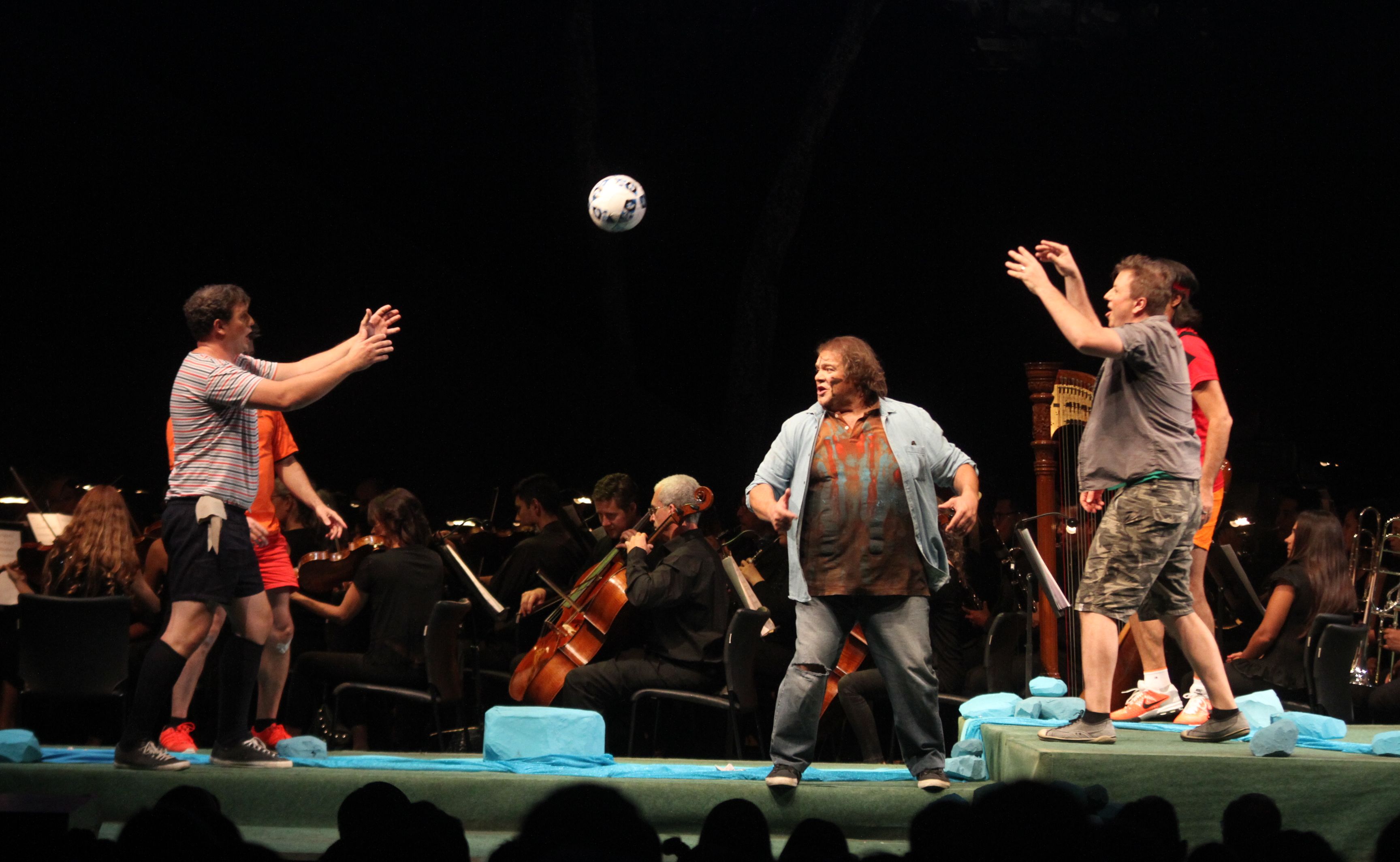 La ópera Tannhäuser para niños que ofreció la reggie Zsofía Gerés en el Teatro del Bicentenario encantó no solo al público infantil, también a los padres y que en consecuencia, sirvió para dos claros propósitos encadenados al espectáculo: primero es poner en valor la obra de Wagner y que sea redescubierta de una manera más amena, en la plena etapa creativa del compositor alemán. Segundo, acercar a los niños y a las propias familias, al universo de la ópera. La adaptación de la mano de la bisnieta Katharina Wagner y de Markus Latsch, en una hora de función, transportó a la platea en una divertida aventura de unos niños debaten sus sentimientos, la amistad, el enamoramiento y el miedo de perder la inocencia. El protagonista Tannhäuser (Duilio Smiriglia) tenía la encrucijada por ver con quién quedarse, si con Venus (Constanza Díaz Falü) o por Elizabeth (Marina Silva). A todo esto, sus amigos Landgraf (Román Modzelewsky), Wolfram (Fernando Lazari), Biterolf (Lucas Mayer) y Walter (Ariel Casalis), también querían engalanar a Elizabeth, pero sentían celos por Tannhäuser porque en el fondo, él sí pudo estar en la tierra ‘prohibida’ donde se encuentra Venus. Para resolver el conflicto, los cincos niños se disputaron por la aprobación de Elizabeth, a un duelo de canto. En este momento, los personajes hicieron una fisura a la cuarta pared y los tomó por sorpresa a los pequeños espectadores, cuando al encenderse las luces de la sala, se bajaron del escenario a repartir coronas y espadas de papel. Otro elemento que fue también un punto a favor para conectarlos a la obra, fue superar la barrera del idioma. Las canciones de los intérpretes efectivamente estaban en idioma alemán, pero asistida con subtítulos, mientras que los diálogos fueron en castellano. Por lo que la obra tuvo una mayor comprensión, sumado a ello, pasajes de humor, acciones histriónicas y un espacio escenográfico simple, minimalista, pero atractivo a la vista. La representación de los juegos de los niños, barcos, armaduras y espadas de caballeros hechos de cartón y una pelota de fútbol, resultaron los signos escénicos que hicieron un buen anclaje para que la puesta llegue directamente a los sentidos. Además, el cuerpo de músicos de la Orquesta Sinfónica de la UNSJ, con la batuta de Emmanuel Siffert verlos mezclarse con los personajes, también aportó su encanto, al margen que desde el aspecto musical, su actuación fue estupenda y muy aplaudida. La ópera volverá a escena en el TDB hoy a las 21.30 y mañana domingo a las 20. Ventas de entrada: $250, $300 y $350; en boletería y en www.tuentrada.com