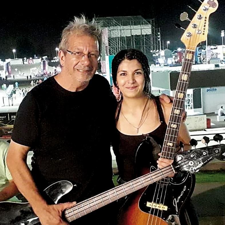 "Tengo familia de músicos. Mi papá es bajista, tuvimos la primera banda, de folclore, con él y mis hermanos. Yo tenía 8 años, tocábamos en fiestas patronales, uniones vecinales. Yo había entrado a la Escuela de Música y tocaba el teclado. En mi casa había mucha música y diversa, porque mis papás escuchaban de todo", relató sus orígenes. "Lo del bajo fue primero por admiración a mi papá y porque siempre había un bajo en casa (risas), así que era fácil aprender y me fui quedando en ese camino. A los 13 empecé a tocar con una banda que hacíamos rock nacional, Eternos peregrinos, tributo a Redondos… y nunca más me saqué el bajo", se explayó la hija de Mario Pereyra, bajista de la banda de Giselle Aldeco y uno de los puntales de Legendarios Blues. El referente que la llena de orgullo cuando lo ve en acción, a la vez que se siente orgullosa de que él pueda verla también. "Ese ida y vuelta con mi papá no tiene precio", marcó. Es que a menudo ambos se cruzan en algún festival, pero es en las reuniones familiares donde "Pereyra e hijos" -como se llamaba aquella banda- vuelve a latir como si el tiempo no hubiera pasado.