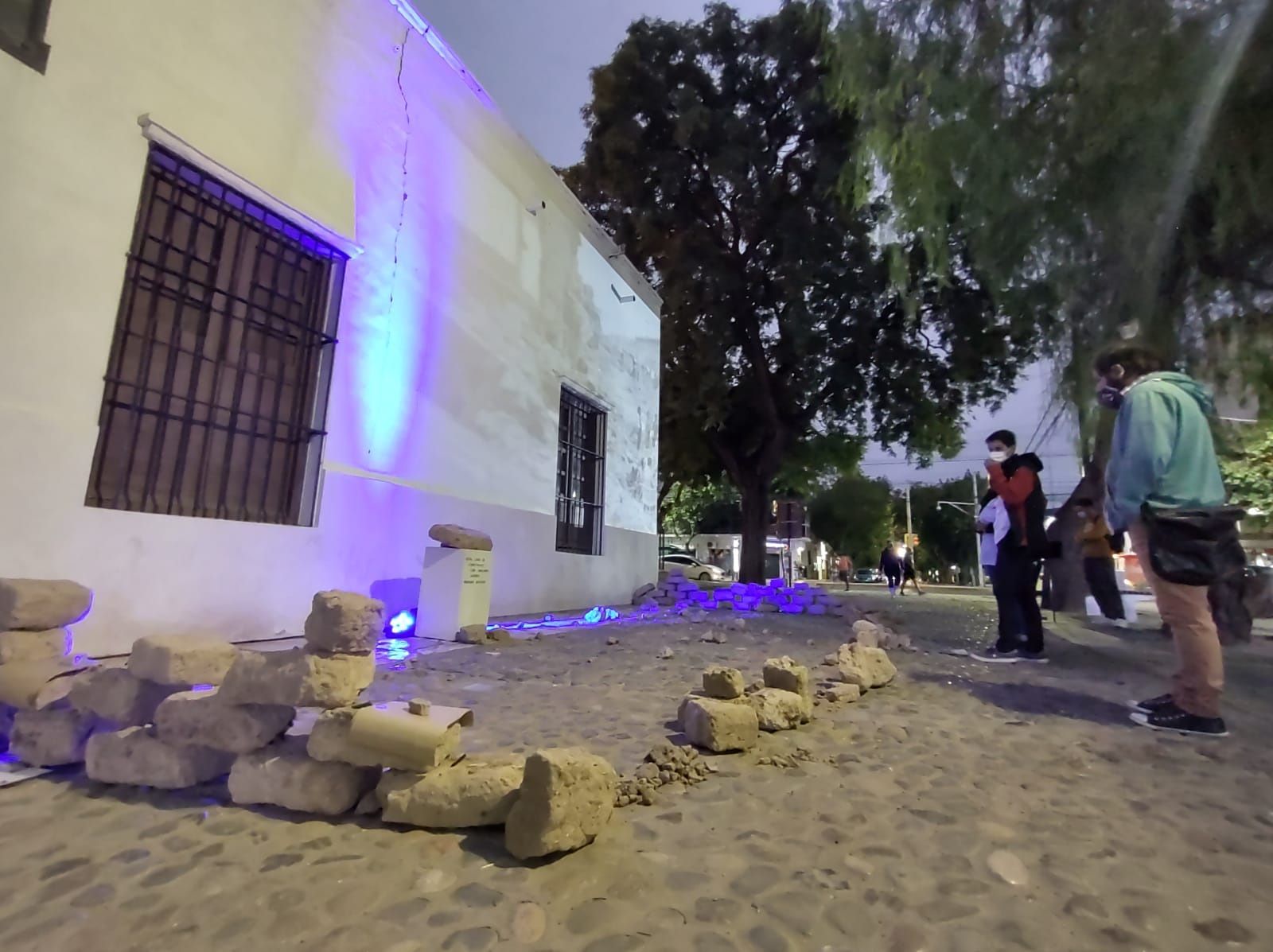 Por cumplirse un año del terremoto del 2021 y también para recordar el de 1944, ambos eventos fueron conectados por una intervención artística y digital en la fachada del Museo y Biblioteca Casa Natal de Sarmiento. La acción tuvo como nombre Memorias de la Casa e inició a la hora exacta del primer sismo, a las 20.49hs.; y duró hasta las 23.45hs. momento que se produjo el del año pasado. A través de una proyección audiovisual y el montaje de varios ladrillos de adobe como símbolo de los cimientos de la casa histórica y con una luz que alumbra sobre la grieta producida por el último sismo, en el muro del edificio, son los componentes de una muestra que tiene como propósito, ser un llamado a la reflexión sobre el pasado reciente. El público que circulaba por la peatonal de manera casual, se acercó y con sus celulares, leían un código QR con información específica de los acontecimientos naturales y de cómo afectaron la estructura de la casa de Doña Paula. La muestra quedará por todo enero y febrero; y se invita a que el espectador deje testimonios escritos o dibujos en la zona de los ladrillos de adobe. ‘Al ser una casa construida con adobes de 1801, es un patrimonio que debemos cuidarlo, pero sabemos que es vulnerable ante la naturaleza. Esta grieta provocada en 2021, nos deja preocupados’, mencionó Araceli Alcalá, quien junto a Melina Santiago y Marta Chávez, (trabajadoras del museo) idearon la intervención.