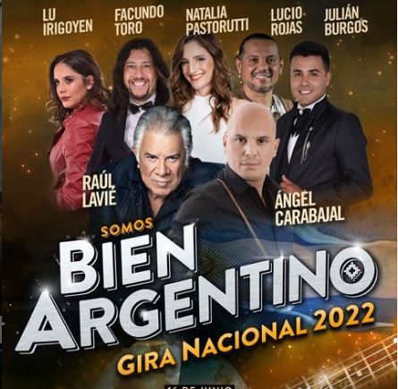 Otra apuesta importante planteada para esta celebración es la presentación del show Bien argentino, dirigido por Ángel Carabajal, que desembarcará el 16 de junio, con el elenco de gira 2022 que integran Raúl Lavié, Lucio Rojas, Natalia Pastorutti, Facundo Toro, Julián Burgos y Lu Irigoyen, que para fusionarse con los festejos locales, sumarán a su puesta a dos elencos de danza capitalinos: El ballet San Juan Nuestro Tiempo, que aparecerá en escena acompañando la actuación de Lavié y el ballet Sembrando Ilusiones, que subirá junto la hermana de la Sole. Esta función también será gratuita, con retiro de invitación.