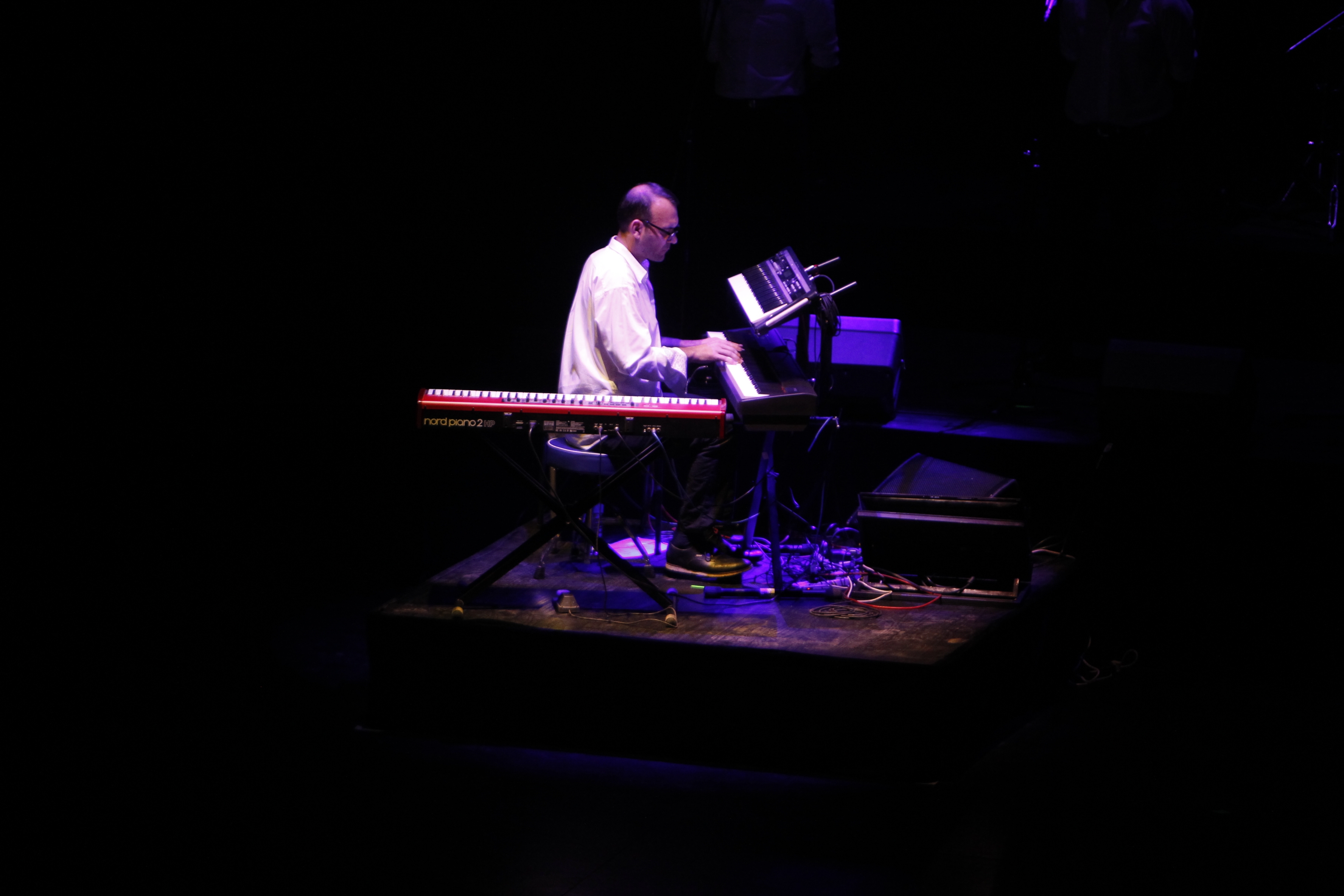 Instrumental. Lucio Flores, uno de los responsables de la puesta, en un solo, con Riquezas mías.