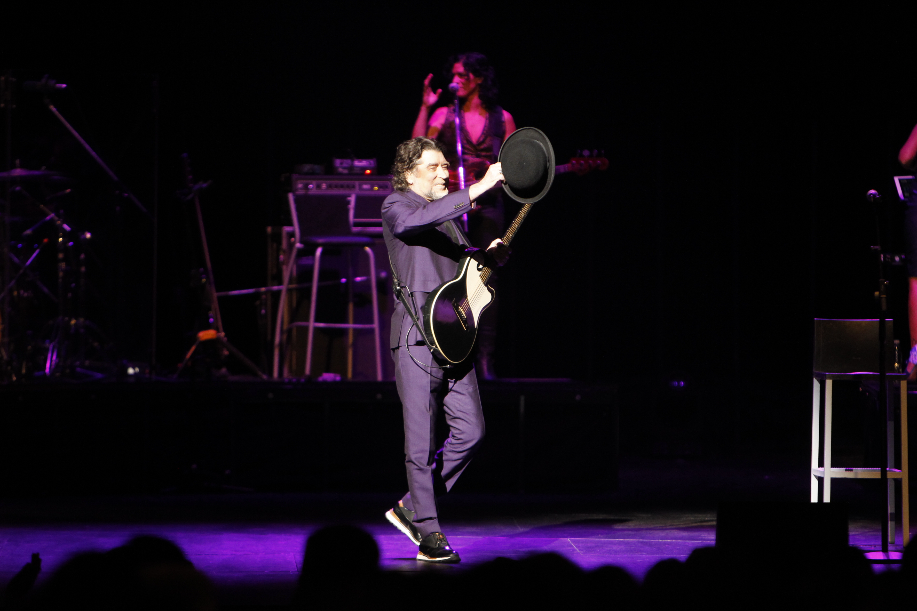 Como si se tratase de una cita íntima con sus espectadores, Joaquín Sabina brindó una brillante noche de cinco estrellas en el Teatro del Bicentenario. Anoche, el cantautor español conoció las tablas de la imponente sala provocándole una gran admiración y gusto por cantar durante casi más de dos horas de show. La poesía, la charla personal, los viajes, los sentires y las anécdotas, fueron parte de esta velada exclusiva que dio en la provincia. Con su sombrero, copa de champagne en su mesa y vestido con un elegante traje, Sabina fue recibido con un fuerte aplauso por parte de la platea y al concluir con los temas de apertura ‘Cuando era más joven’ (del álbum de 1985 Juez y Parte) y ‘Lo Niego Todo’ (su reciente producción homónima del 2017), saludó con su fino buen humor que lo caracteriza en cada presentación: "¡Buenas noches sanjuaninos y sanjuaninas! Nosotros llevamos la absurda petulancia europea y creíamos que conocíamos toda la Argentina.